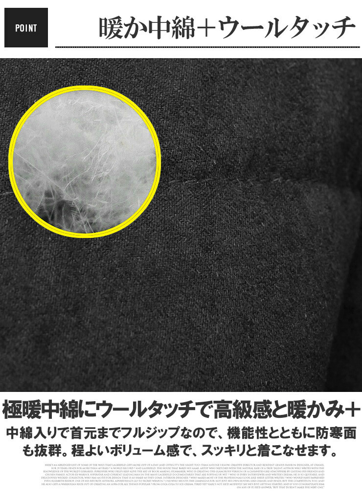商品説明 | 深みのあるウールタッチ素材の手触りが魅力な中綿ジャケットの登場です。 |