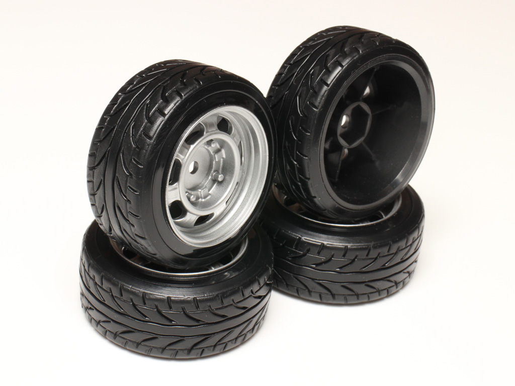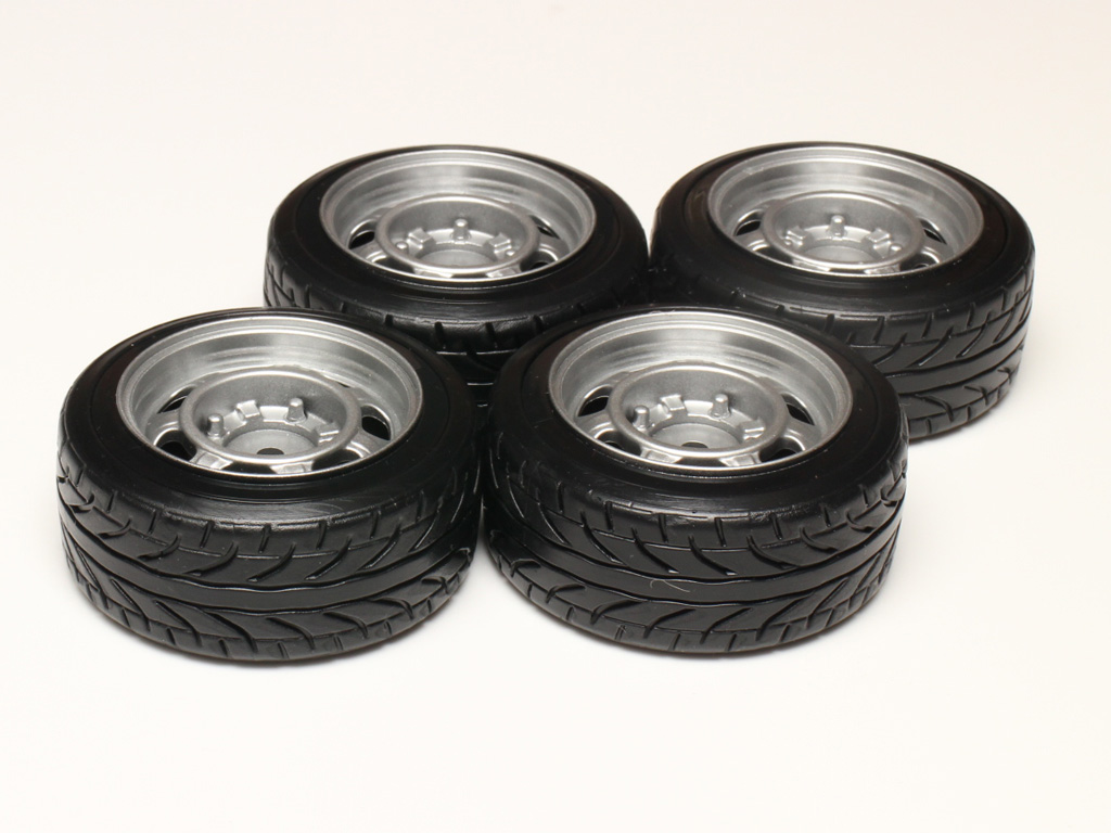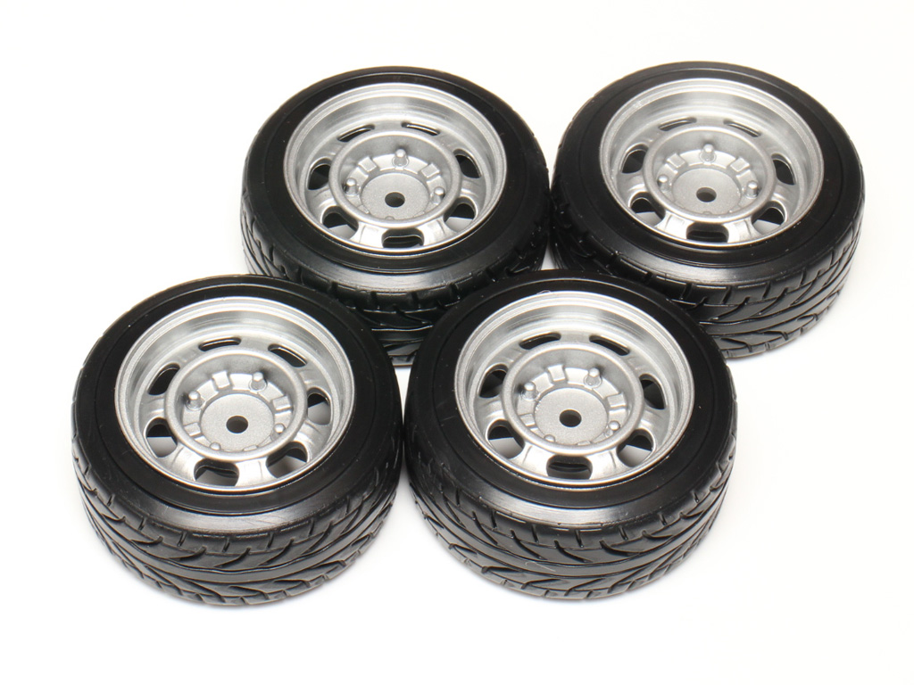 1/10 旧車ドリフト向けハードタイヤ組込済み鉄チン風ホイール 4本セットです。