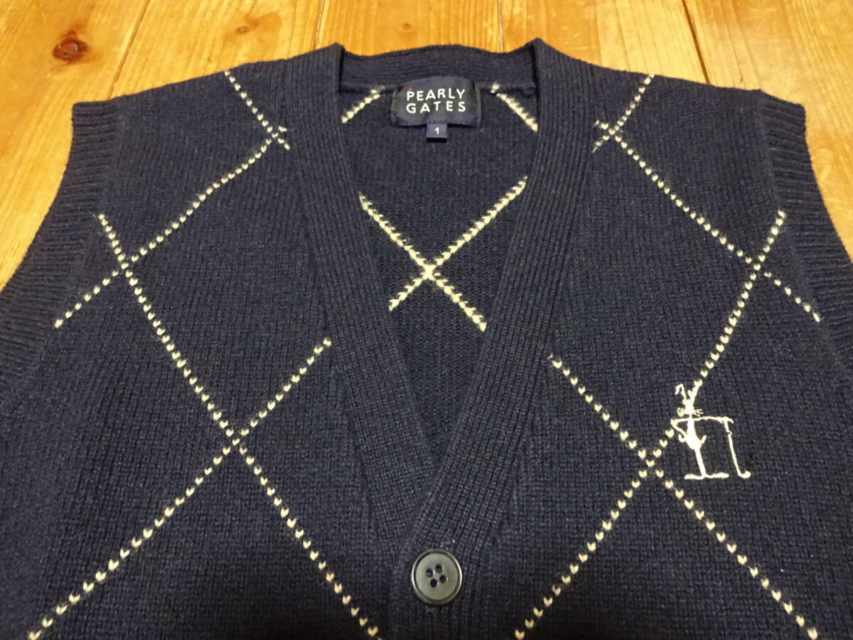 ◆ PEARLY GATES GOLFベスト / 未使用品に近い / ■サイズ:1(M(説明文参照)) ■カラー:ネイビーブルー/斜め格子柄 □送料無料