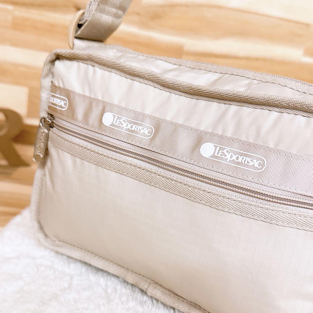 軽やかなハリ感が心地よい、シャリっとした質感のナイロン素材。やや光沢のあるアイボリーカラーが落ち着いた雰囲気に導き、柔らかで優しい雰囲気のブランドロゴとの淡いコントラストが魅力的。シンプルながらカラーリングと、程良いスクエアフォルムで大人オシャレな上品さを添えてくれるLeSportsacのショルダーバッグです。