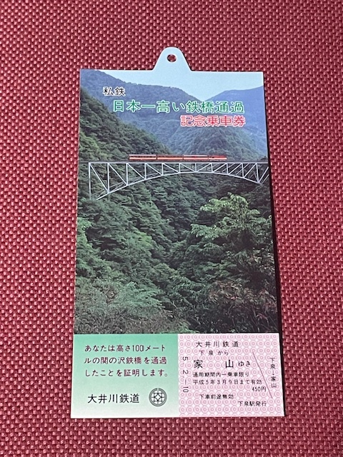 大井川鉄道 平成5年 私鉄 日本一高い鉄橋通過 記念乗車券 (管理番号102-50)
