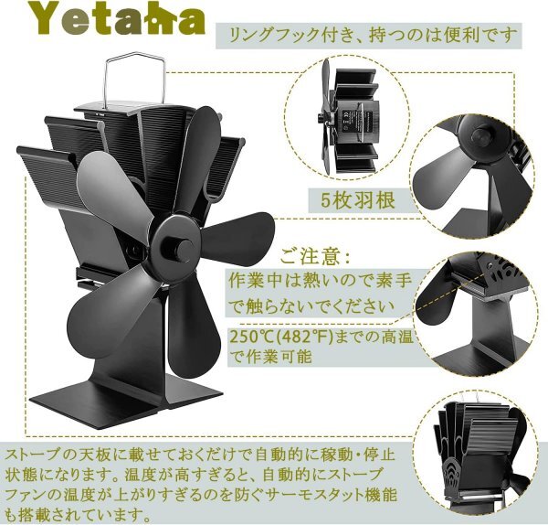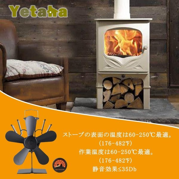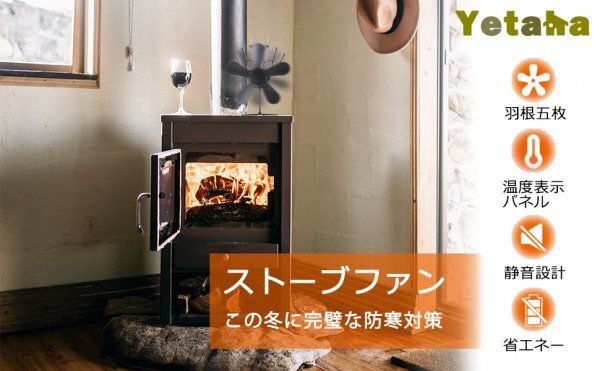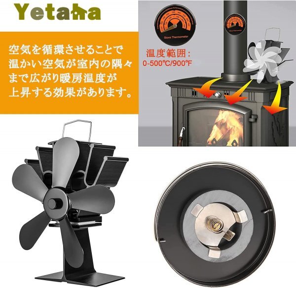 ストーブファン 薪ストーブファン 石油ストーブファン 5つブレード 暖炉ファン エコファン 空気循環 薪ストーブ 静音 電源不要 暖房用品 防寒対策 省エネ 温度計/取扱説明書付き