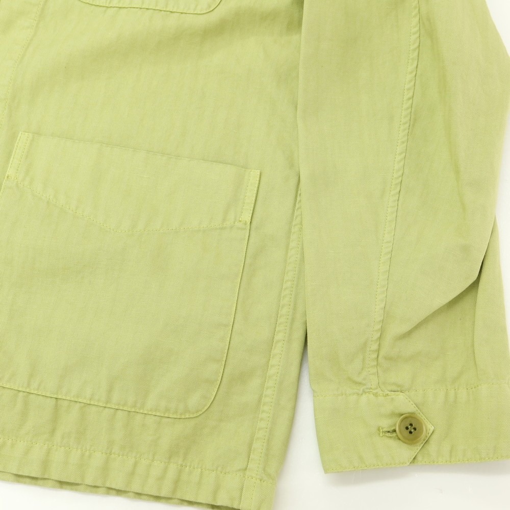 ほのかな節感があるヘリンボーン織のコットンリネン生地を用いたカバーオールジャケットは、カジュアルな上質アウターでお馴染みのアスペジから。洗いをかけることで味わい深い風合いを表現したカジュアルなデザインになりまして、ライム系のきれいな色合いで仕上げる事で、自然な華やかさも感じさせます。適度なゆとりを持たせたシルエットになりまして、春や秋の軽いアウターとして重宝します。