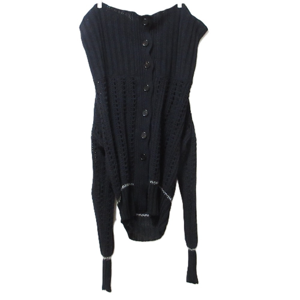 良品 ANN DEMEULEMEESTER アンドゥムルメステール ヴィンテージ 黒タグ 変形 ローゲージニットジャケット カーディガン 36 ブラック