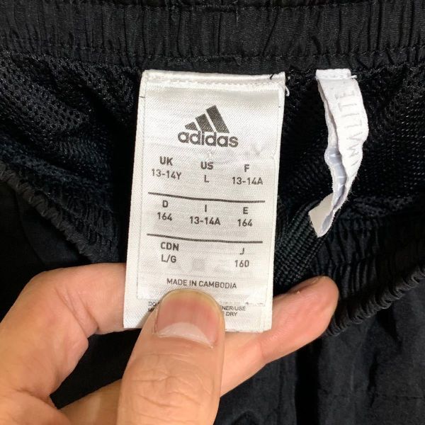 ■ 子供用 アディダス CLIMALITE パフォーマンスロゴ トラックパンツ 黒 Lサイズ adidas ジャージ 定番色 スポーツ 古着 ■