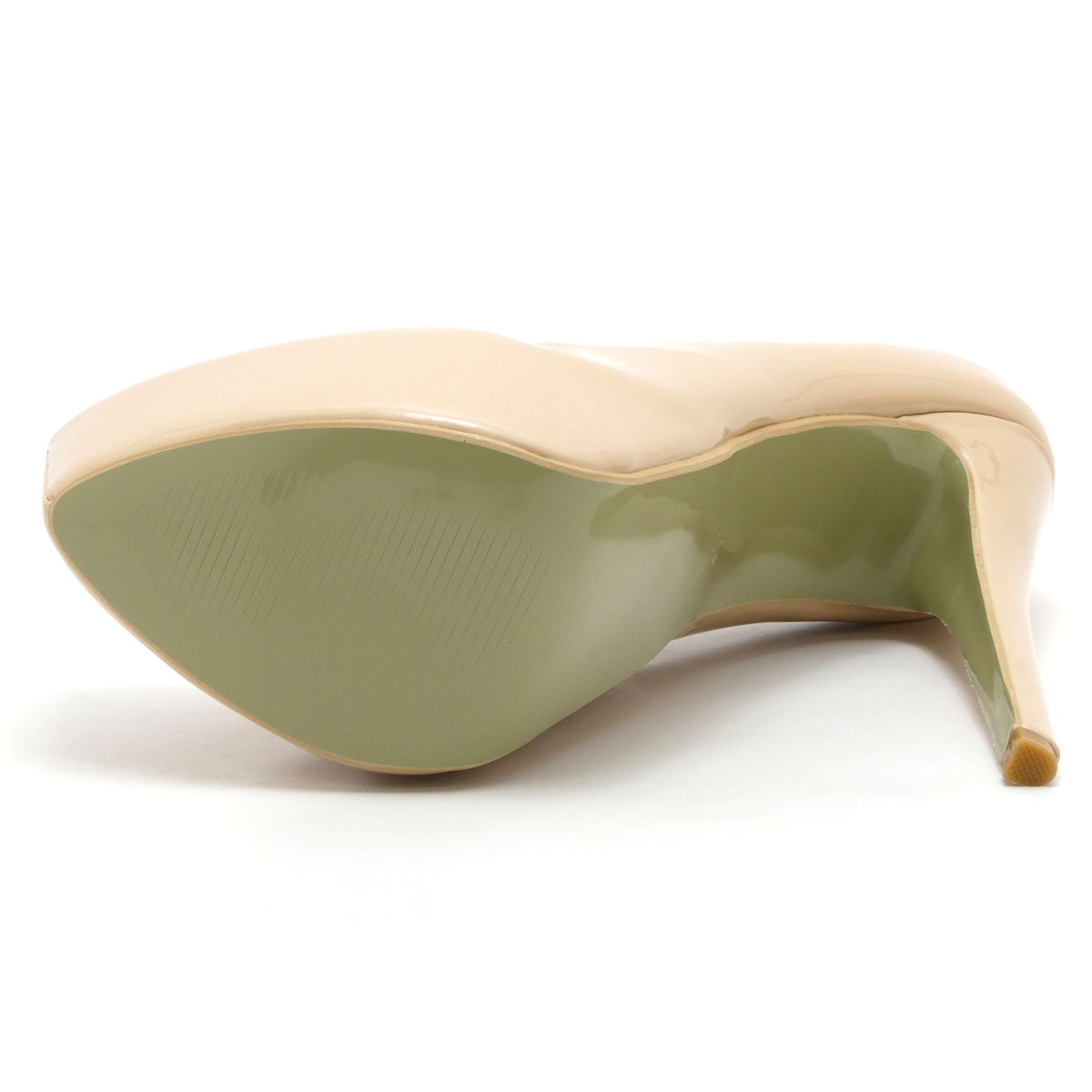 新品 大きいサイズ パンプス ベージュ 26cm 131415-42 エナメル調 前厚底ストーム ハイヒール