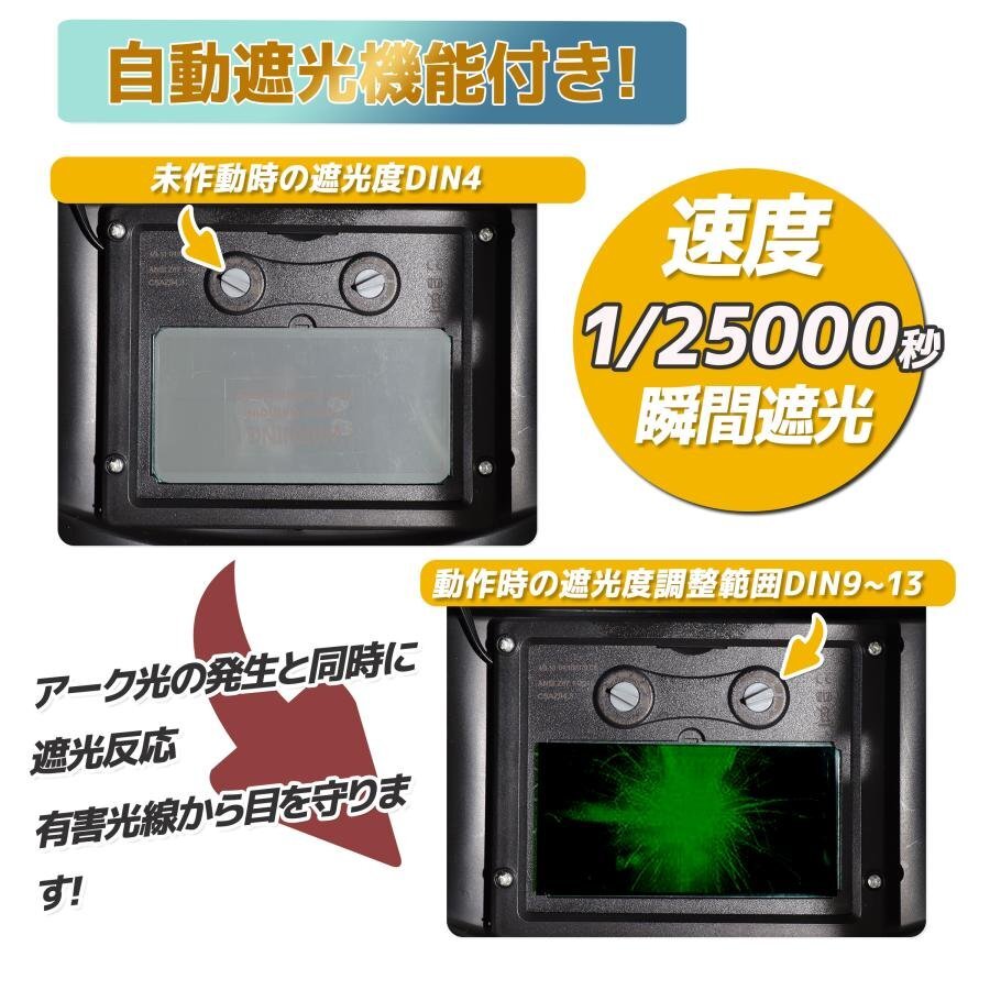 ■送料無料■溶接面 溶接マスク 溶接面 自動遮光溶接面 遮光速度1/25000秒 軽量 アーク対応 ソーラー電池採用