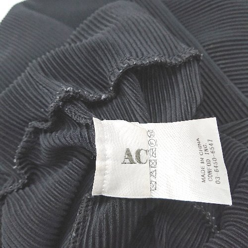 ◇ ⊇ ACYM ウエストゴム リブワイドパンツ サイズF ブラック レディース E