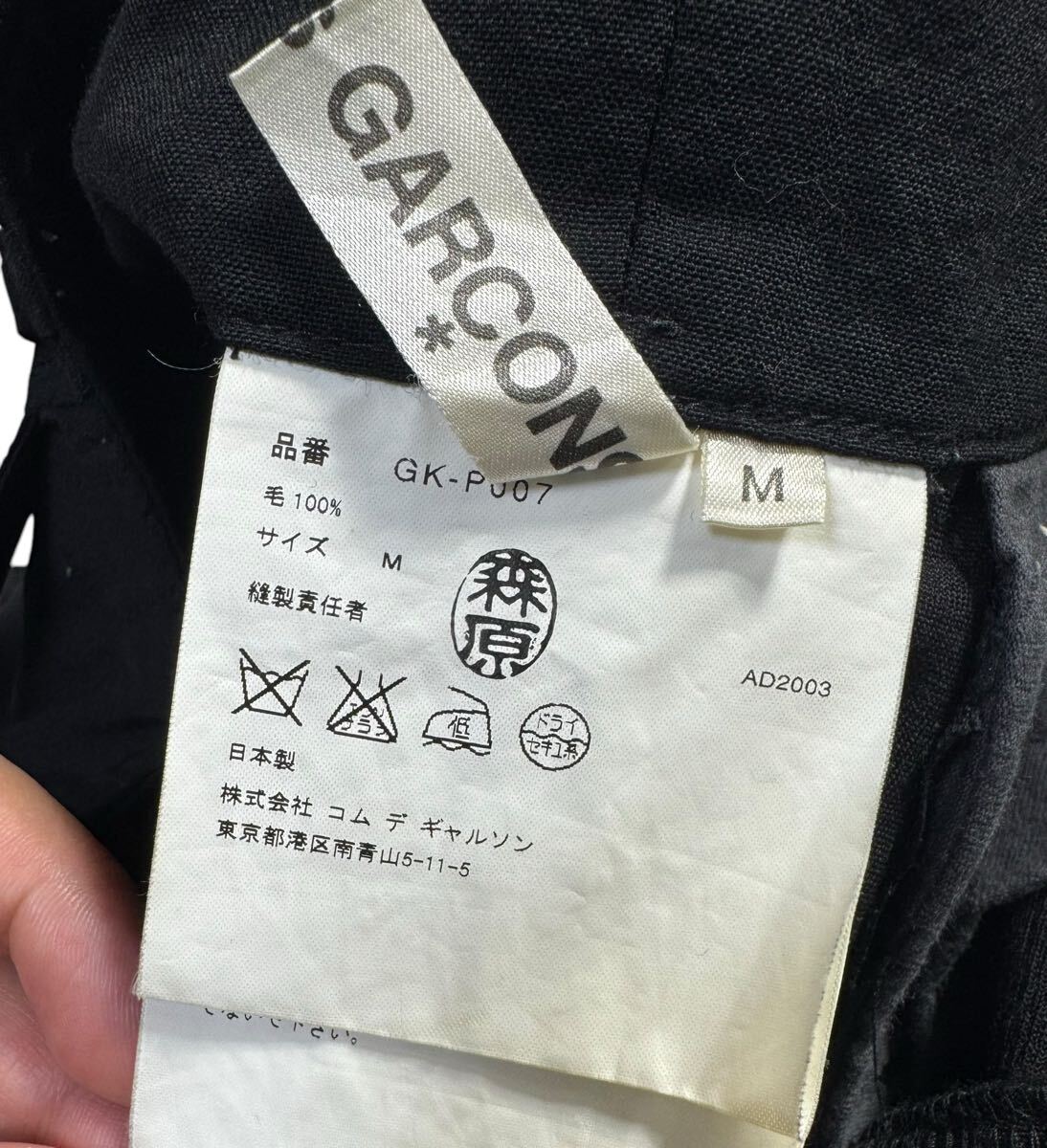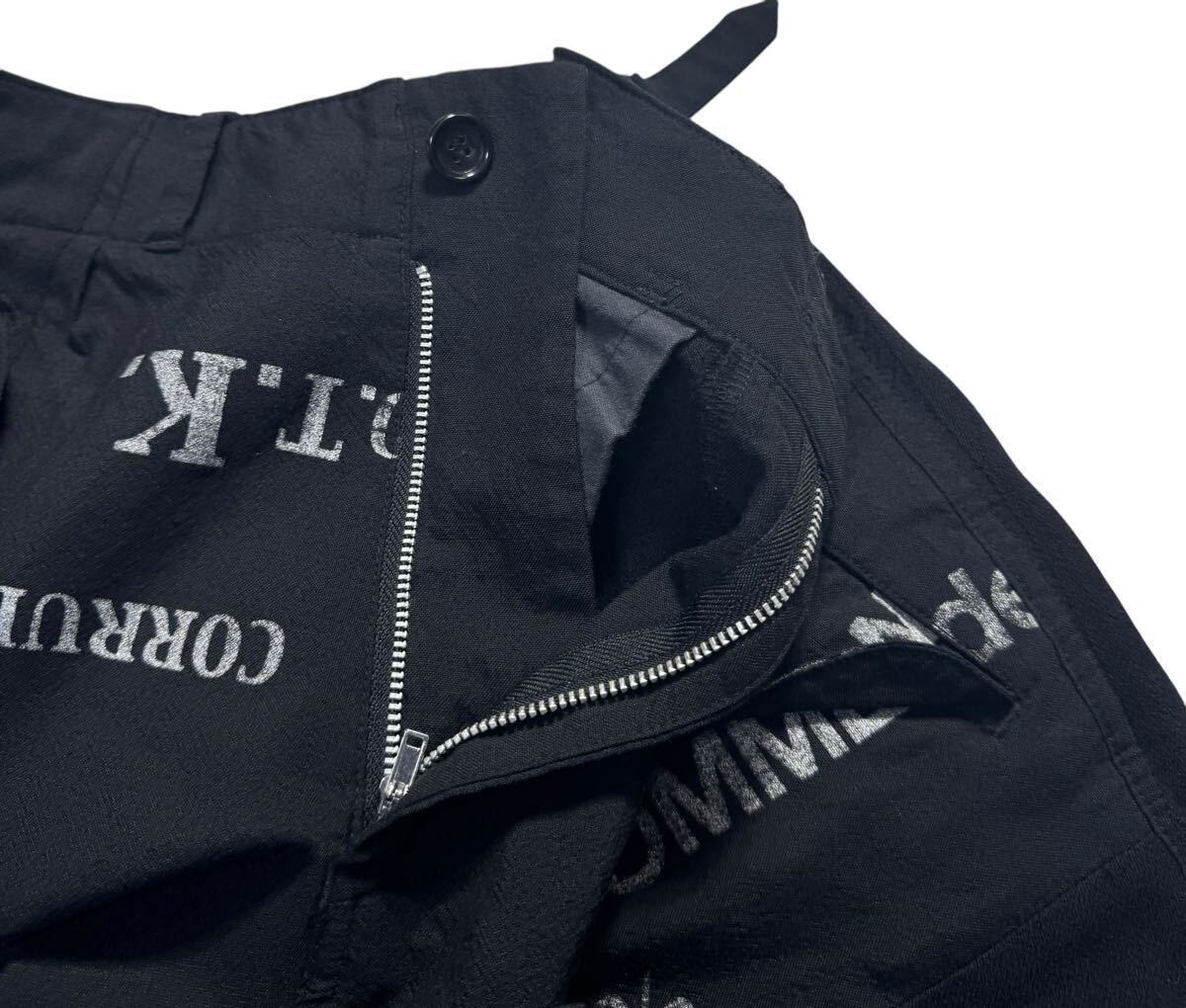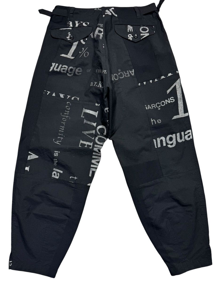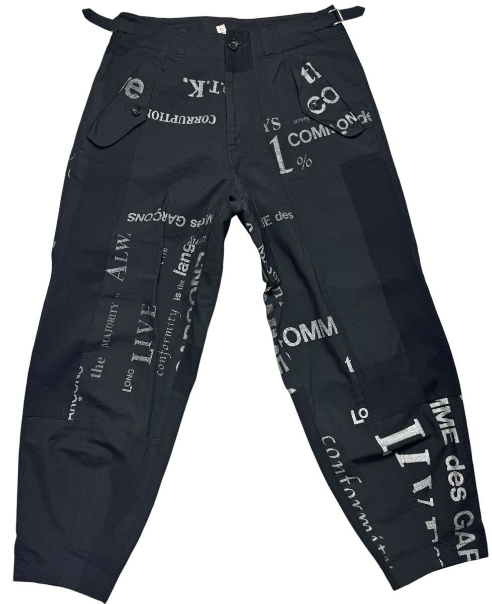 AD2003 COMME des GARCONS コムデギャルソン SQUARE期 英字プリント 再構築 テーパードパンツ ブラック M