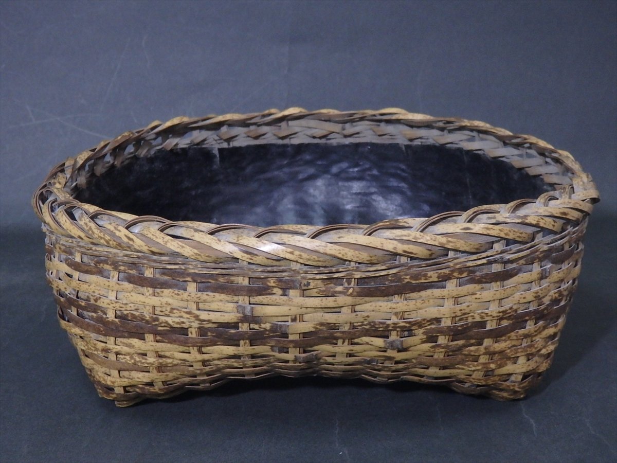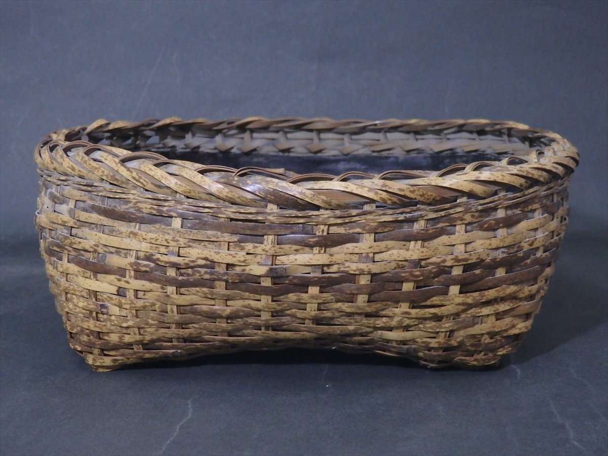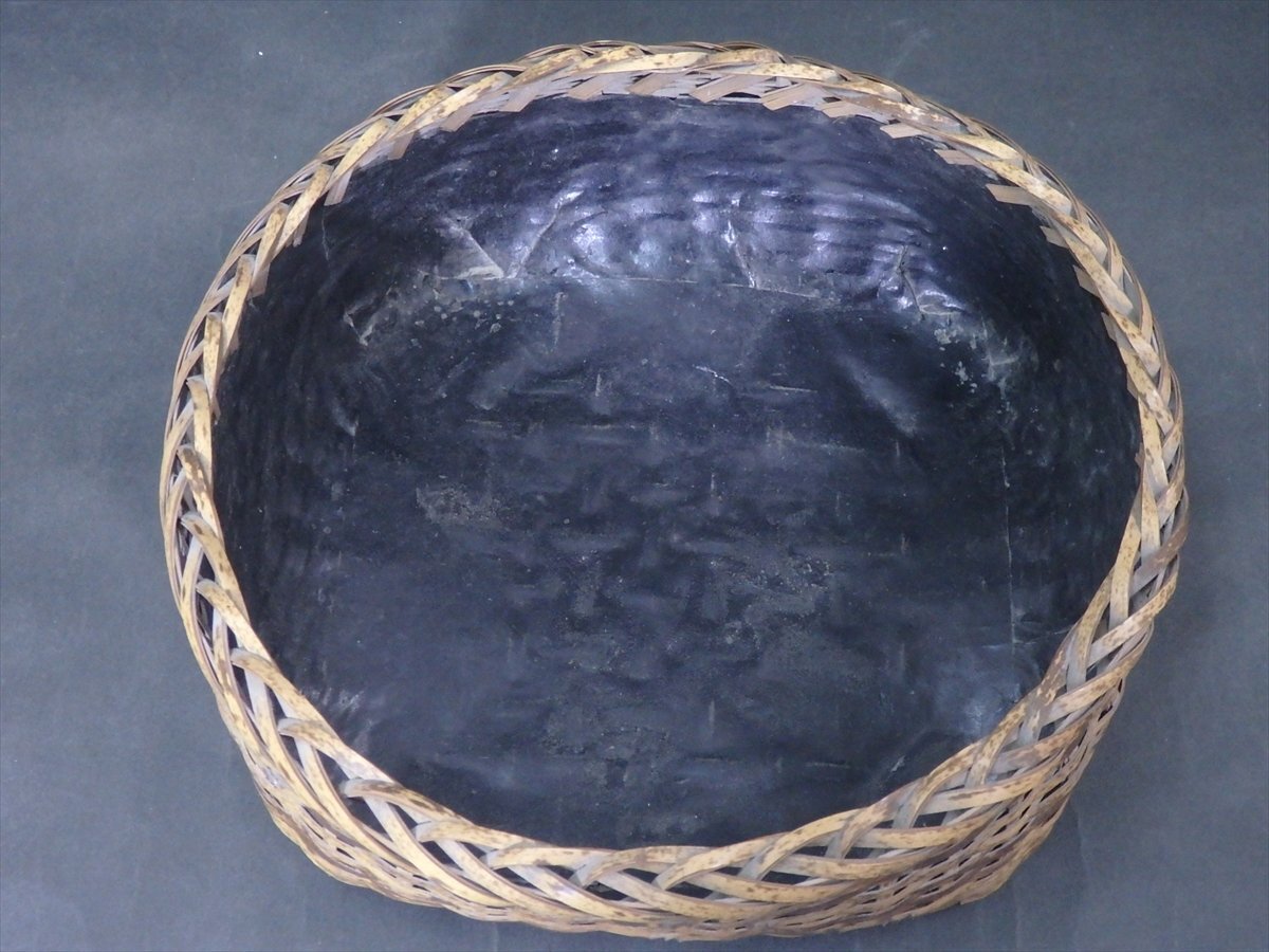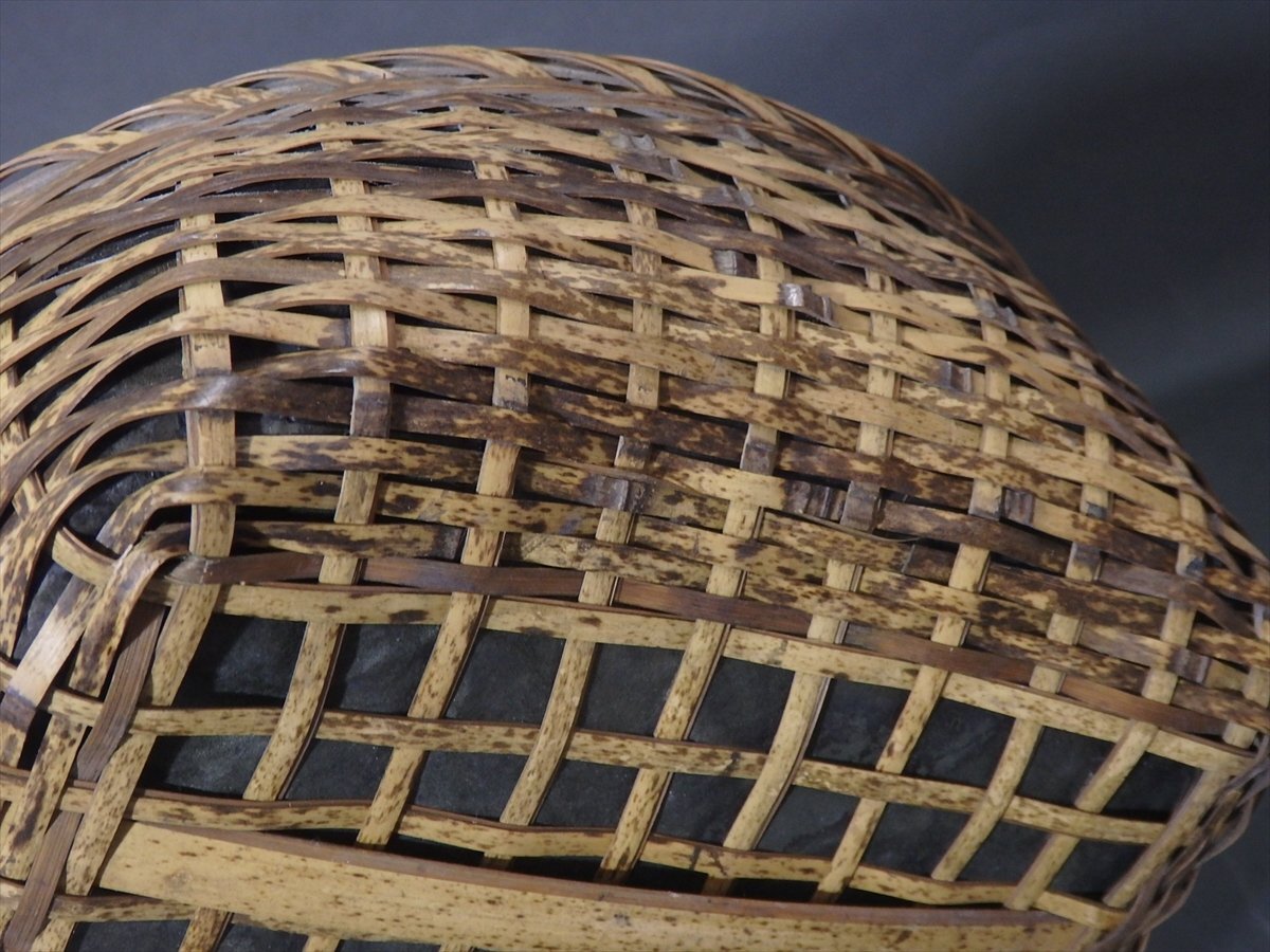 【管理番号5-0326287-8 スタッフコメント:iy】  ☆内側の和紙は5ミリほどの破れと使用感がありますが、竹にホツレや切れはありません。かっちりとしっかり編まれています。