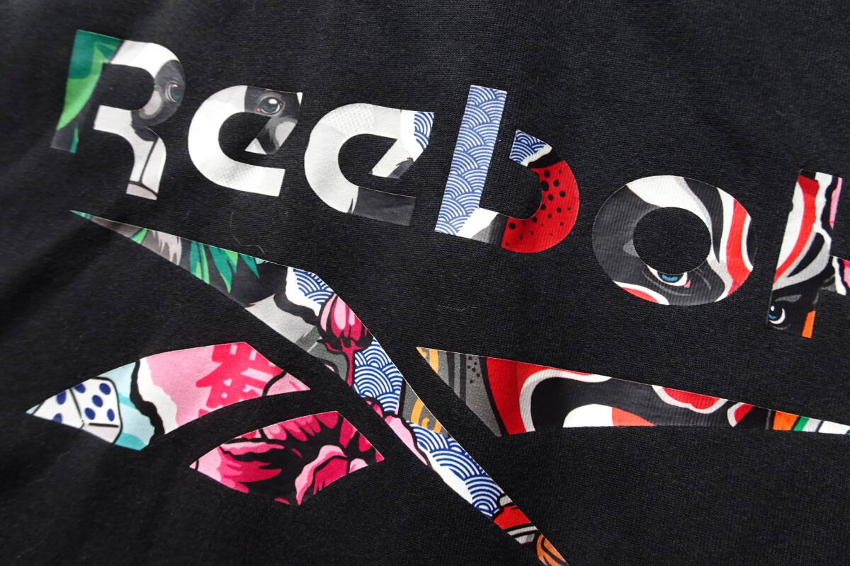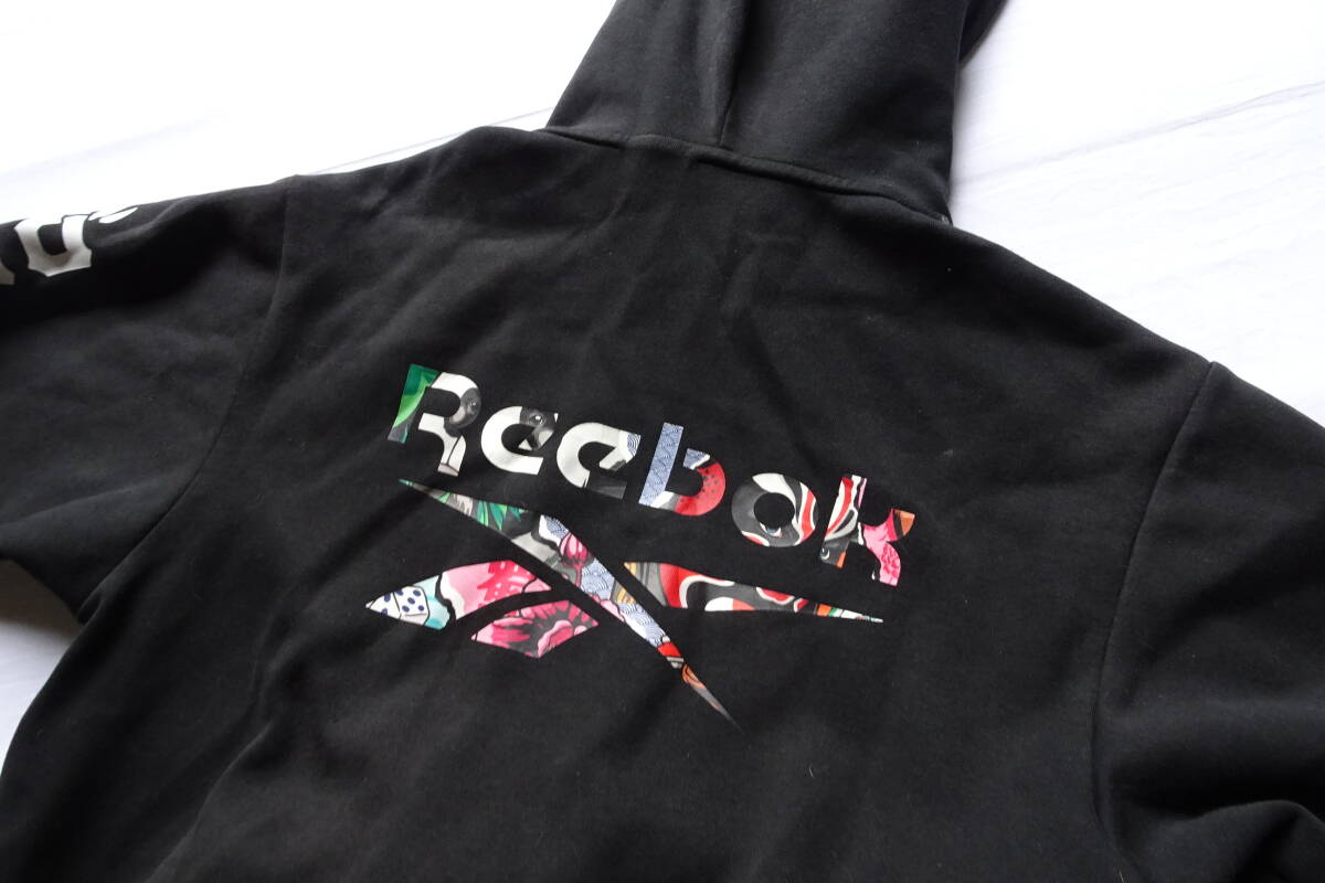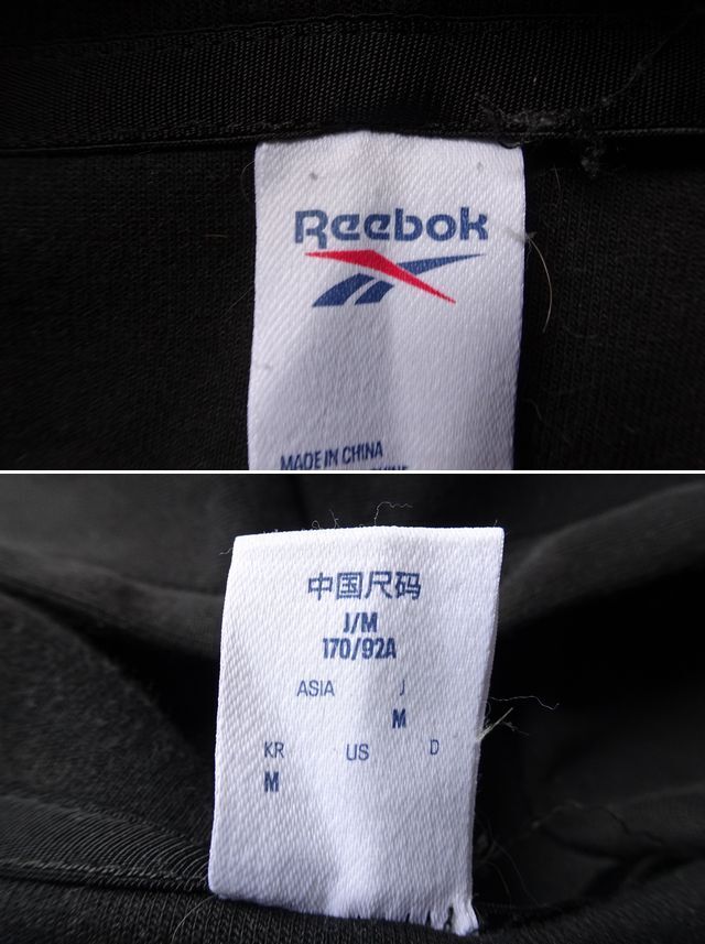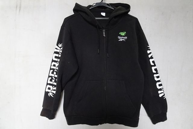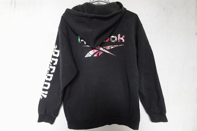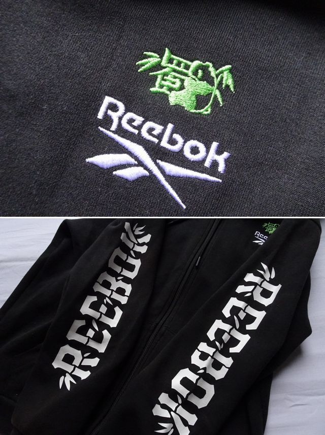 Reebok/リーボック/長袖パーカ/スウェット素材/前ジップアップ/ロゴプリント/中華系柄/笹モチーフ/黒/ブラック/Mサイズ(4/2R7)