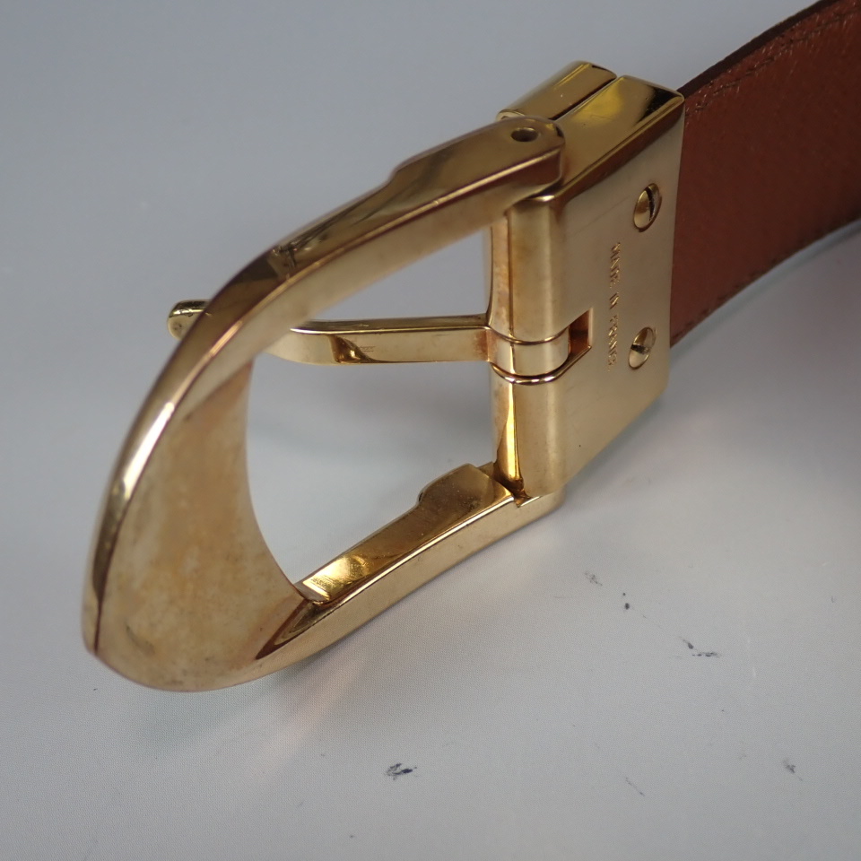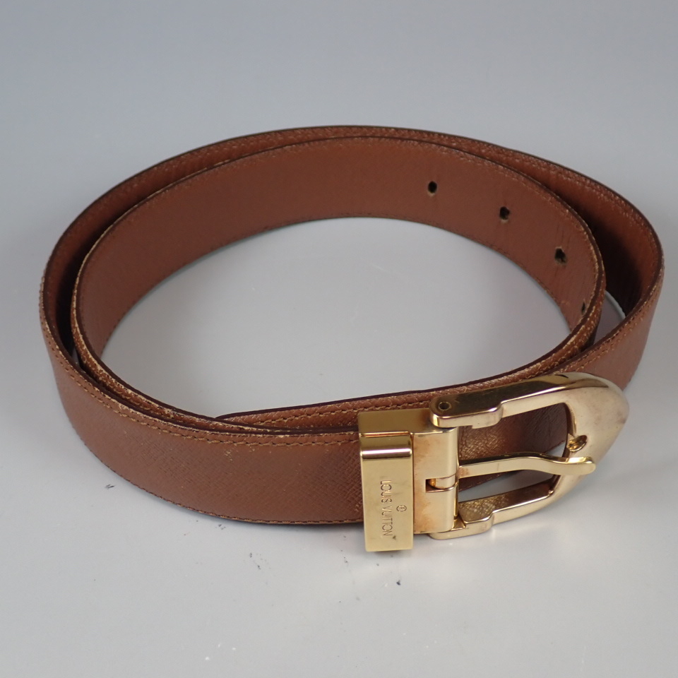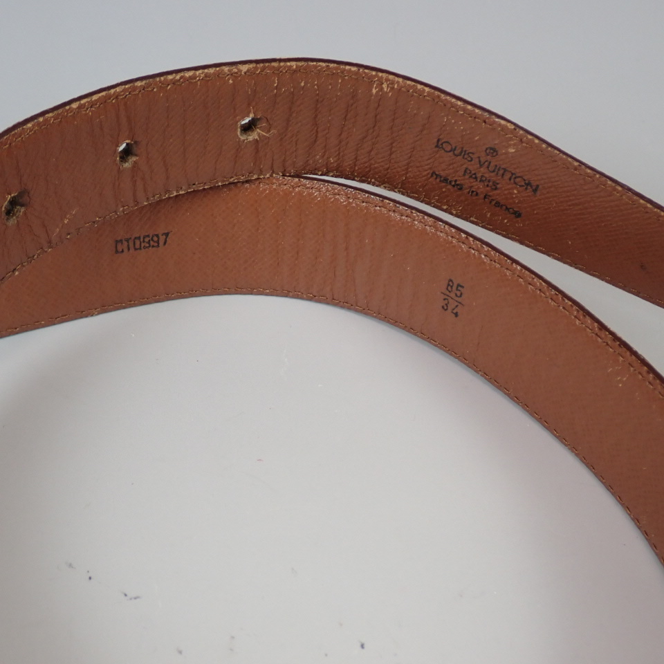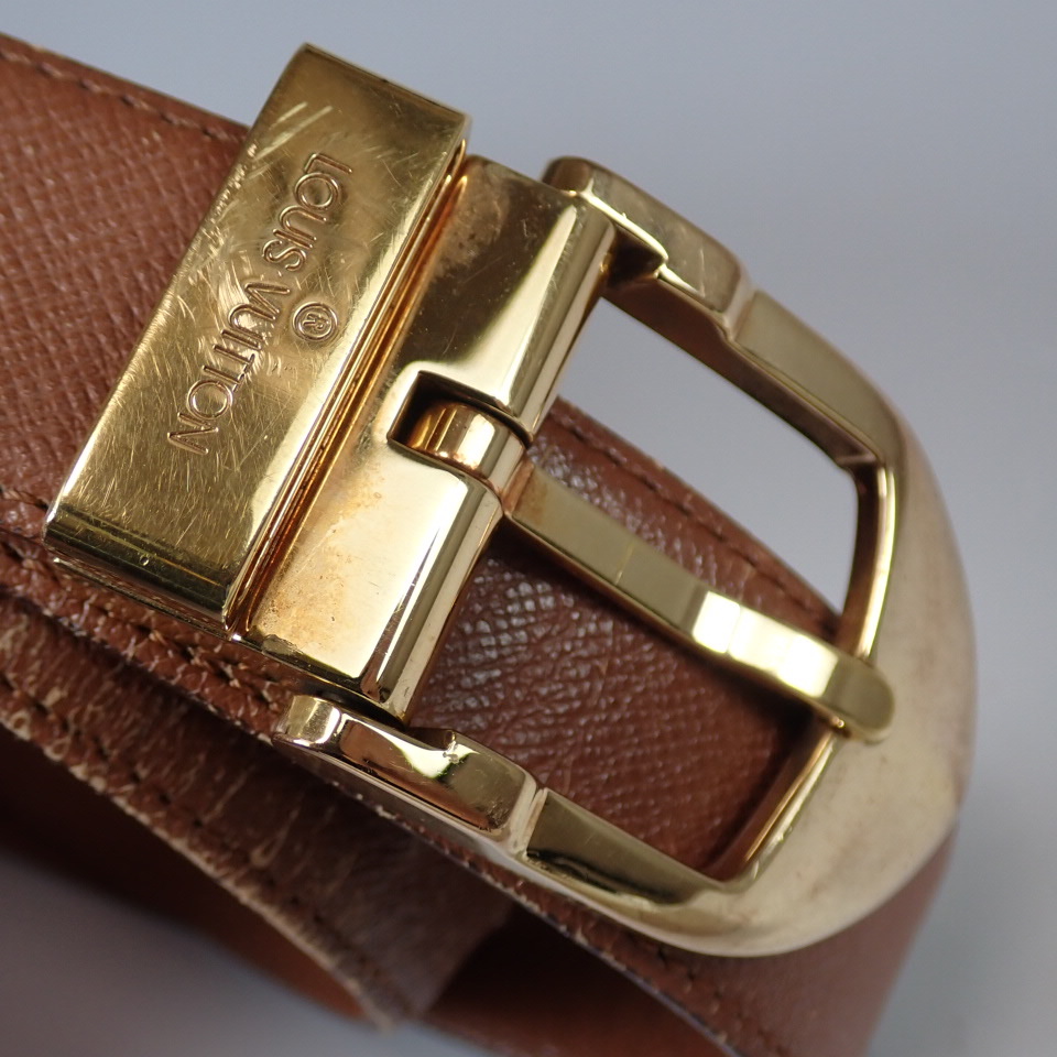 LOUIS VUITTON ルイ・ヴィトン サンチュール クラシック タイガ ブラウン ベルト ゴールド金具 レザー 85/34 M6840 中古