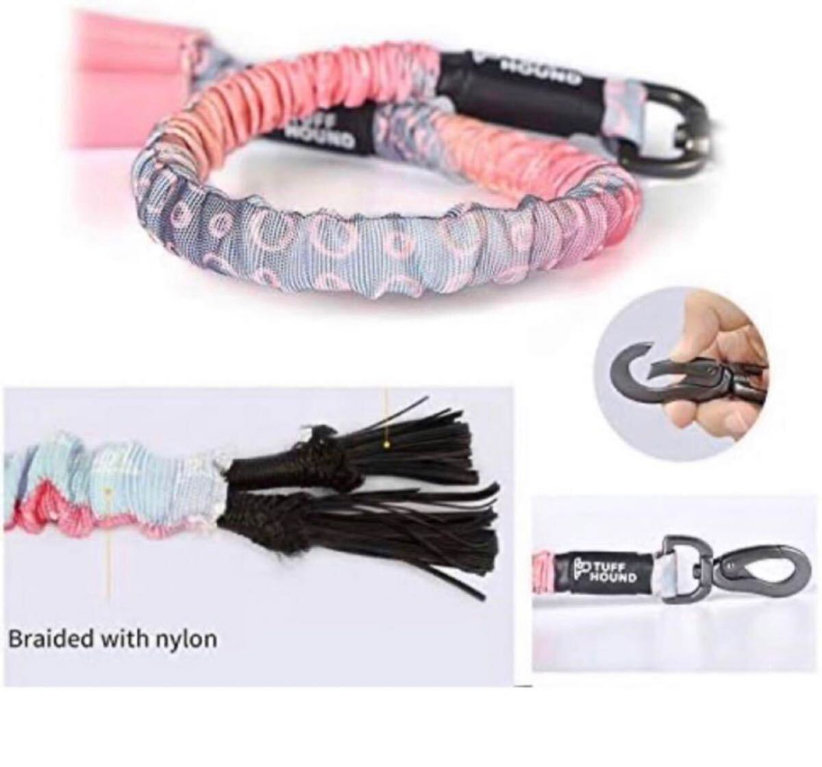4. 高耐久: 伸縮性の高いリード。伸縮性のあるパッドは、犬が方向を変えたり、突然前に動いたりしたときに、腕や犬の体が引っ張られるのを防ぎます。十分なストレッチを行うと、怪我のリスクが軽減され、快適さが増します。