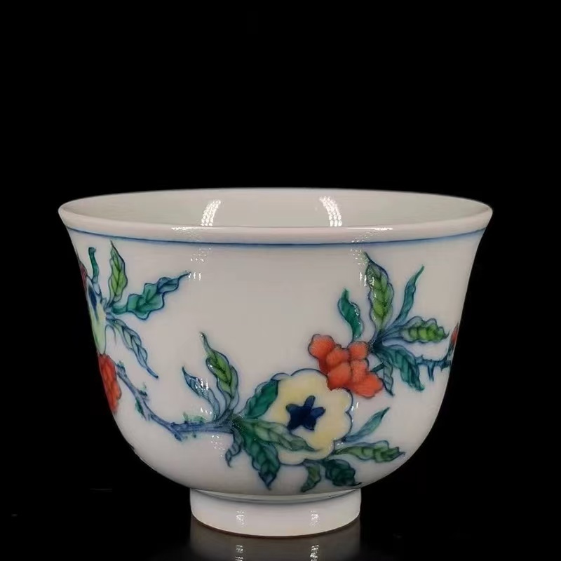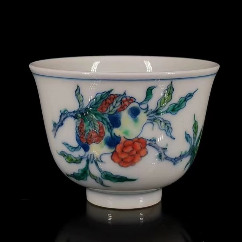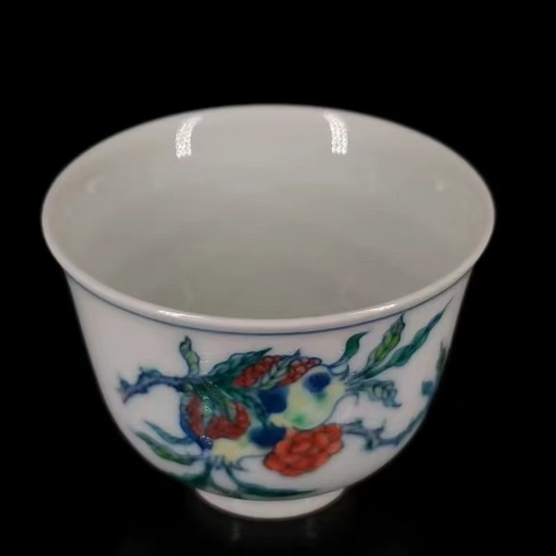 清時代 雍正年製款 古陶磁器 斗彩 花果紋 茶杯一対 茶道具 文案置物 極細工 古賞物 古美味 東洋彫刻 時代物 骨董 中国古美術
