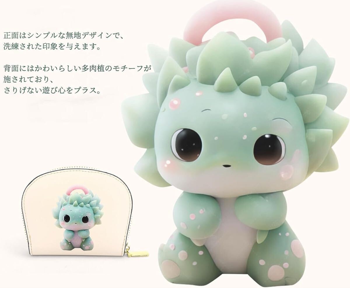 カードケースの正面はシンプルな無地デザインで、洗練された印象を与えます。一方、背面にはかわいらしい多肉植物のモチーフが施されており、さりげない遊び心をプラス。デザインのバランスが絶妙で、どんな場面でも使いやすいアイテムです。
