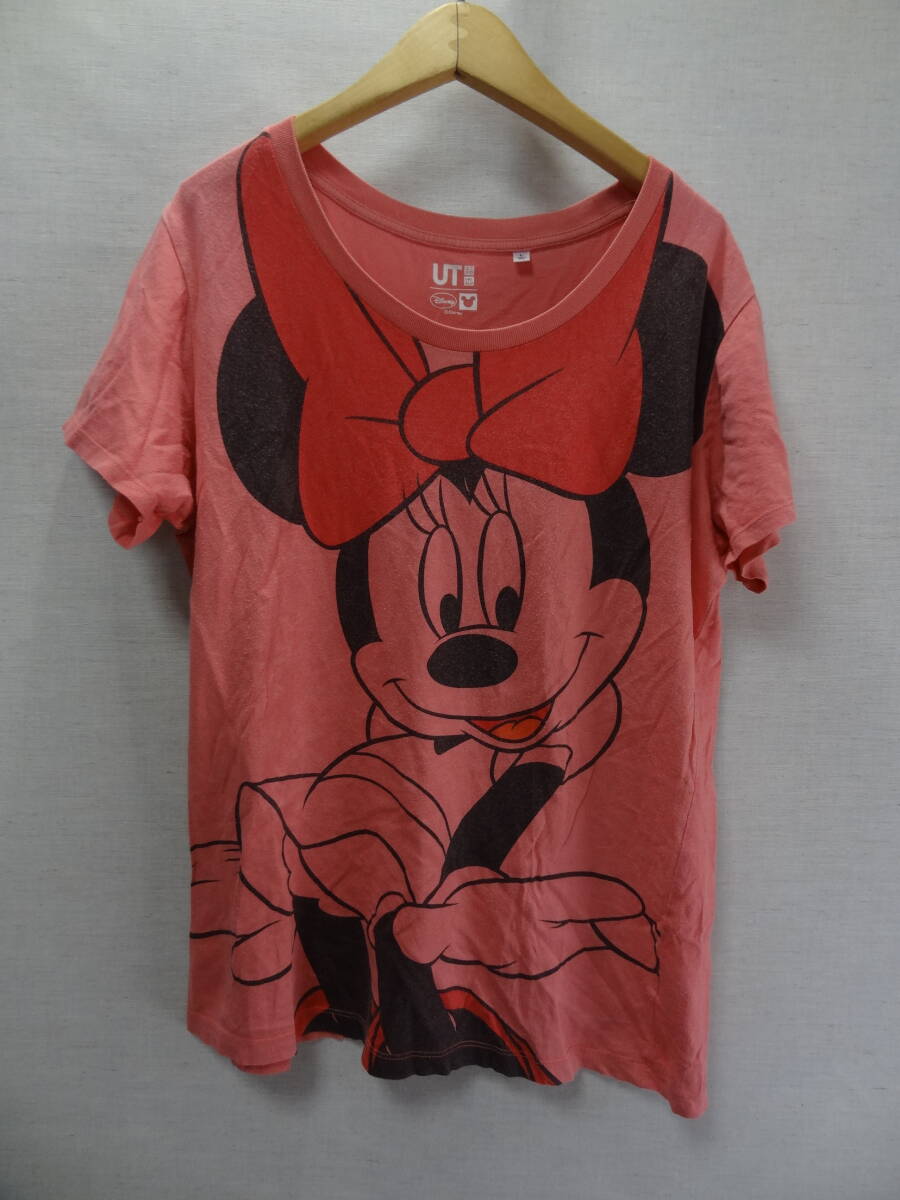 全国送料無料 ユニクロ UNIQLO UT X ディズニー ミニーマウス レディース 綿100%素材 ピンク色 半袖 BIGプリントTシャツ Lサイズ