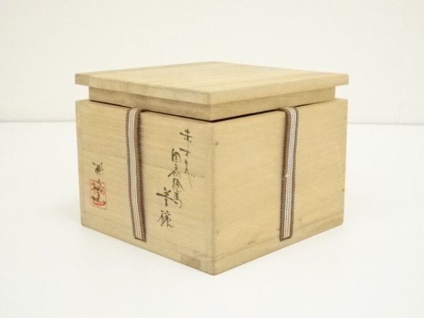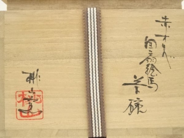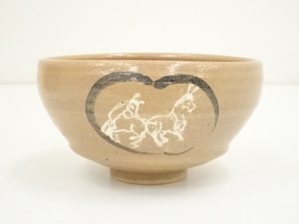 ys7330723; 桃山窯造 赤織部団扇絵馬茶碗(共箱)【道】