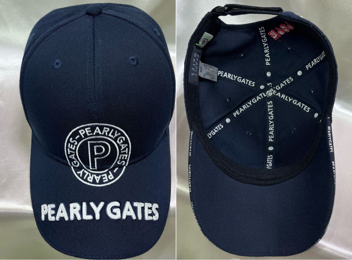 美品 正規品 パーリーゲイツ PEARLY GATES ゴルフ キャップ 帽子 ネイビー系 PG 庇ロゴ