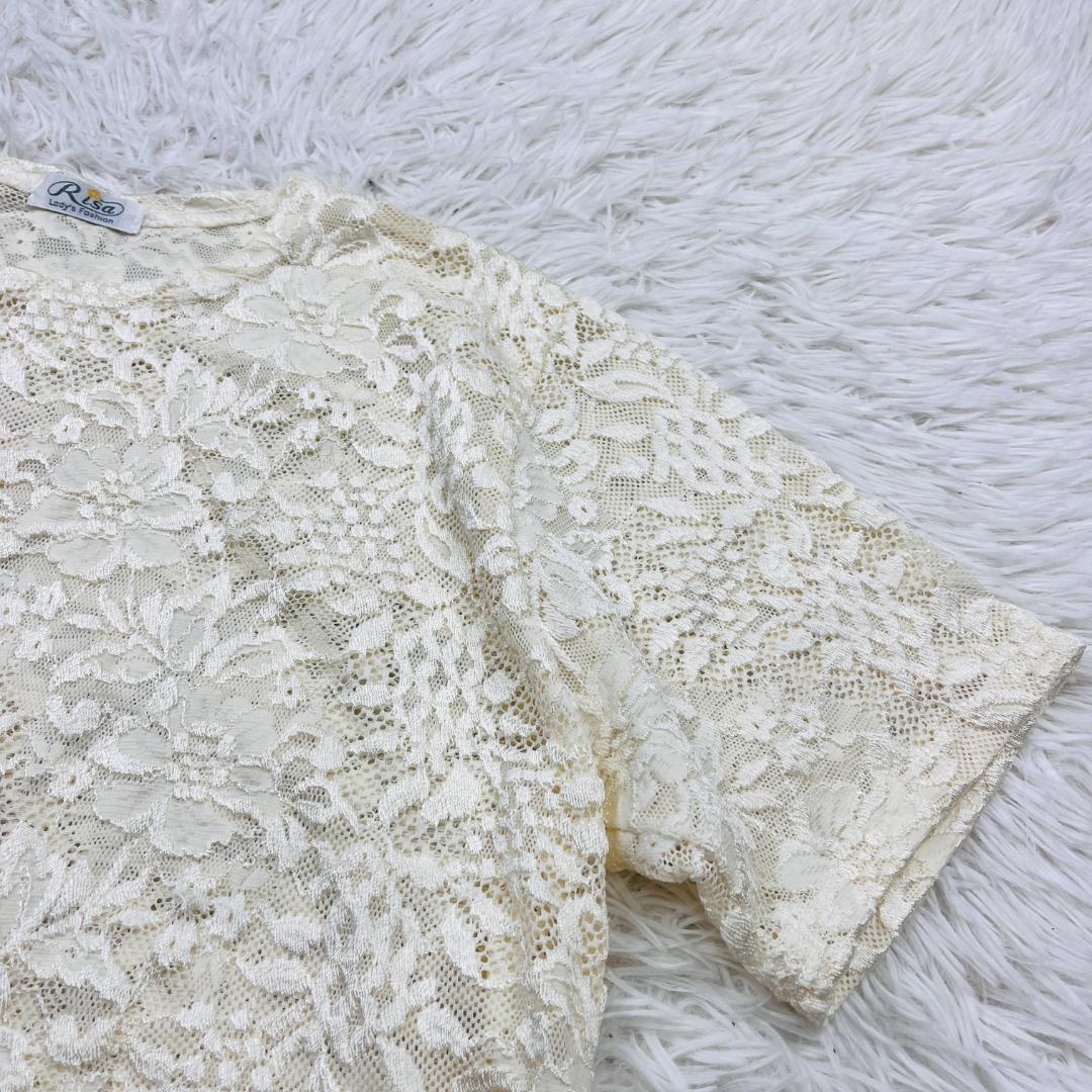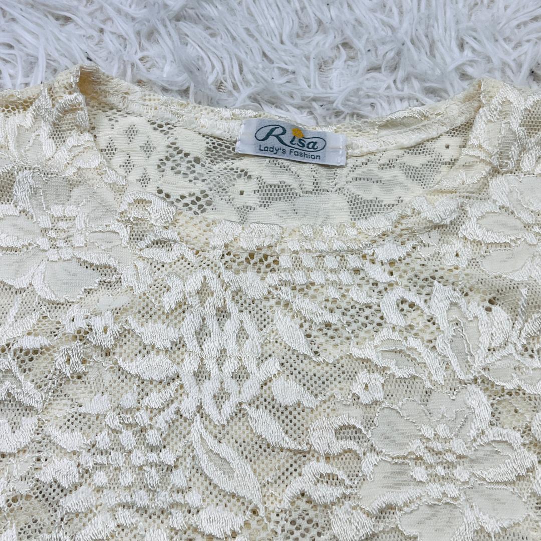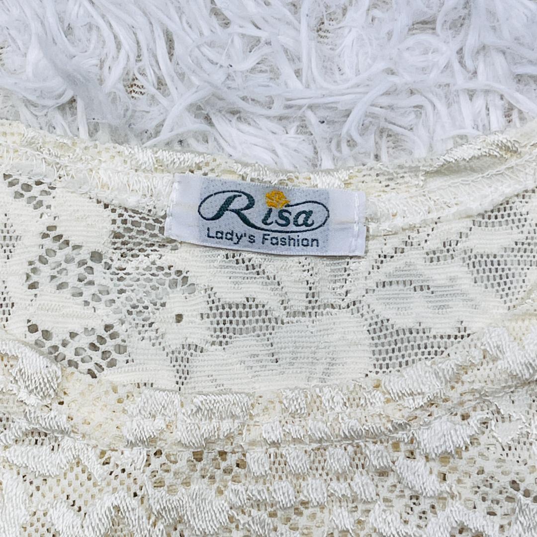 【2066】Risa リサ アイボリー ナチュラル 透かし編みレース レイヤード 重ね着 華やか ニュアンスカラー 総柄 花柄 スリット