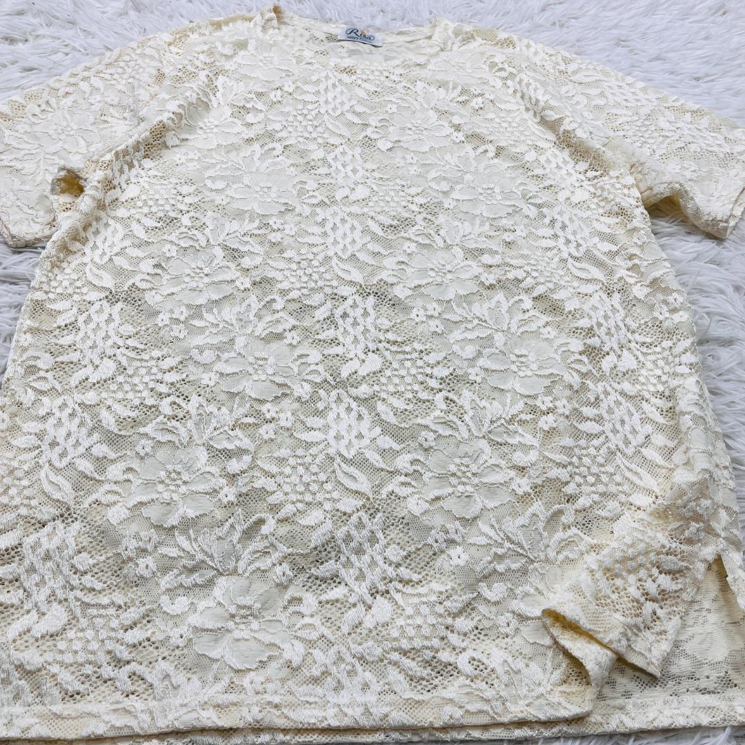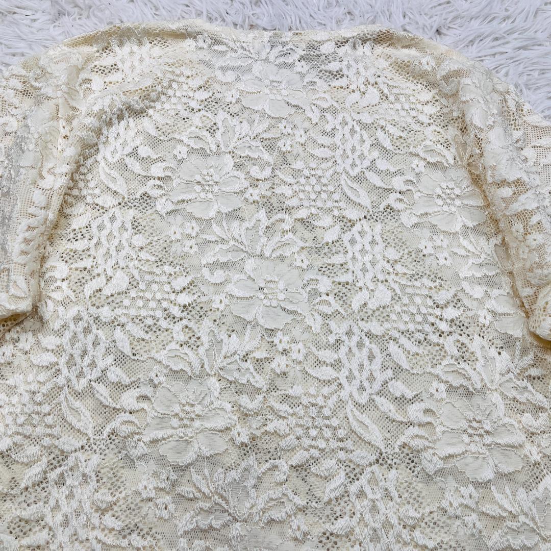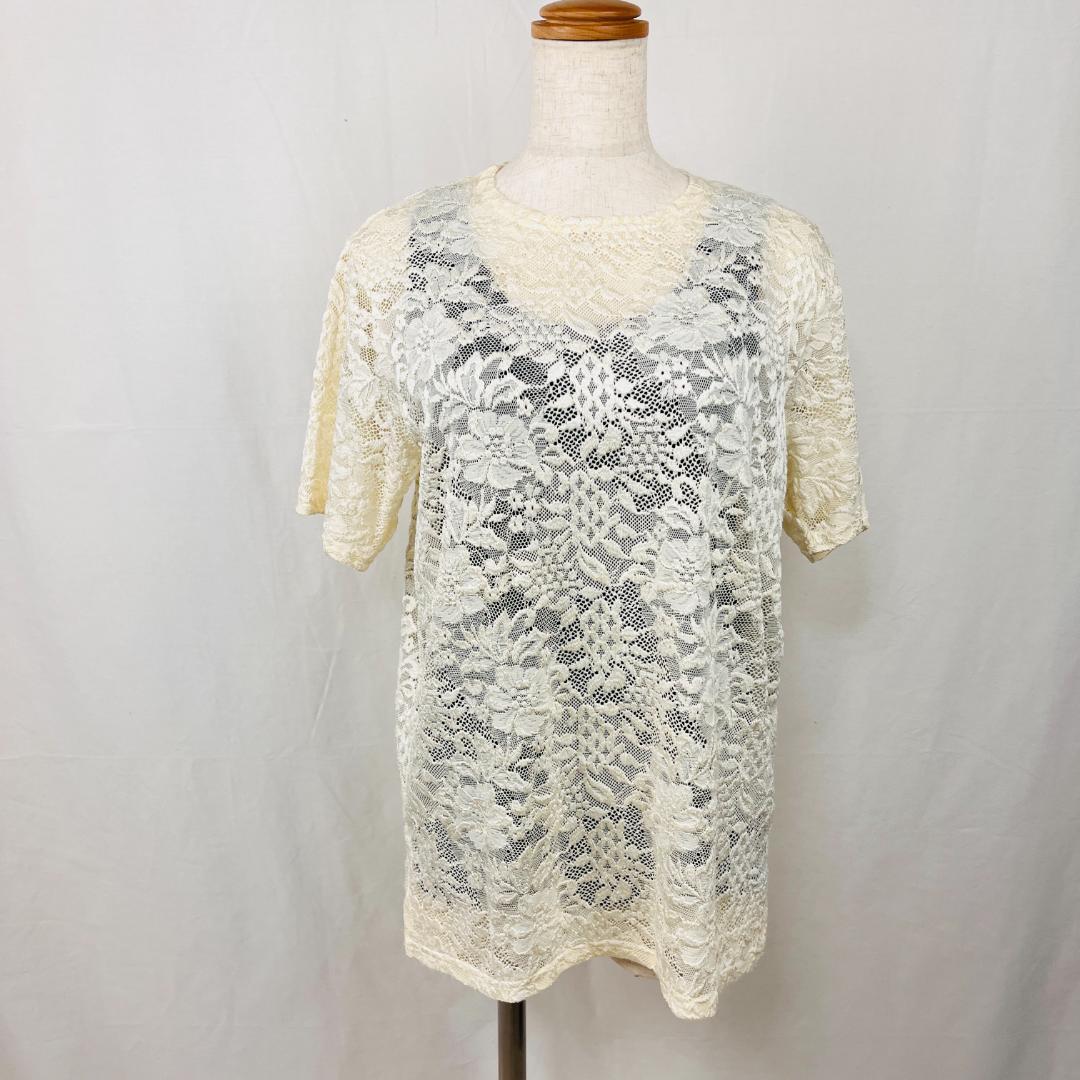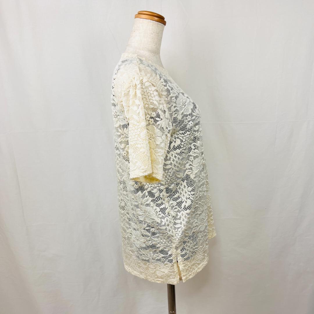 【2066】Risa リサ アイボリー ナチュラル 透かし編みレース レイヤード 重ね着 華やか ニュアンスカラー 総柄 花柄 スリット