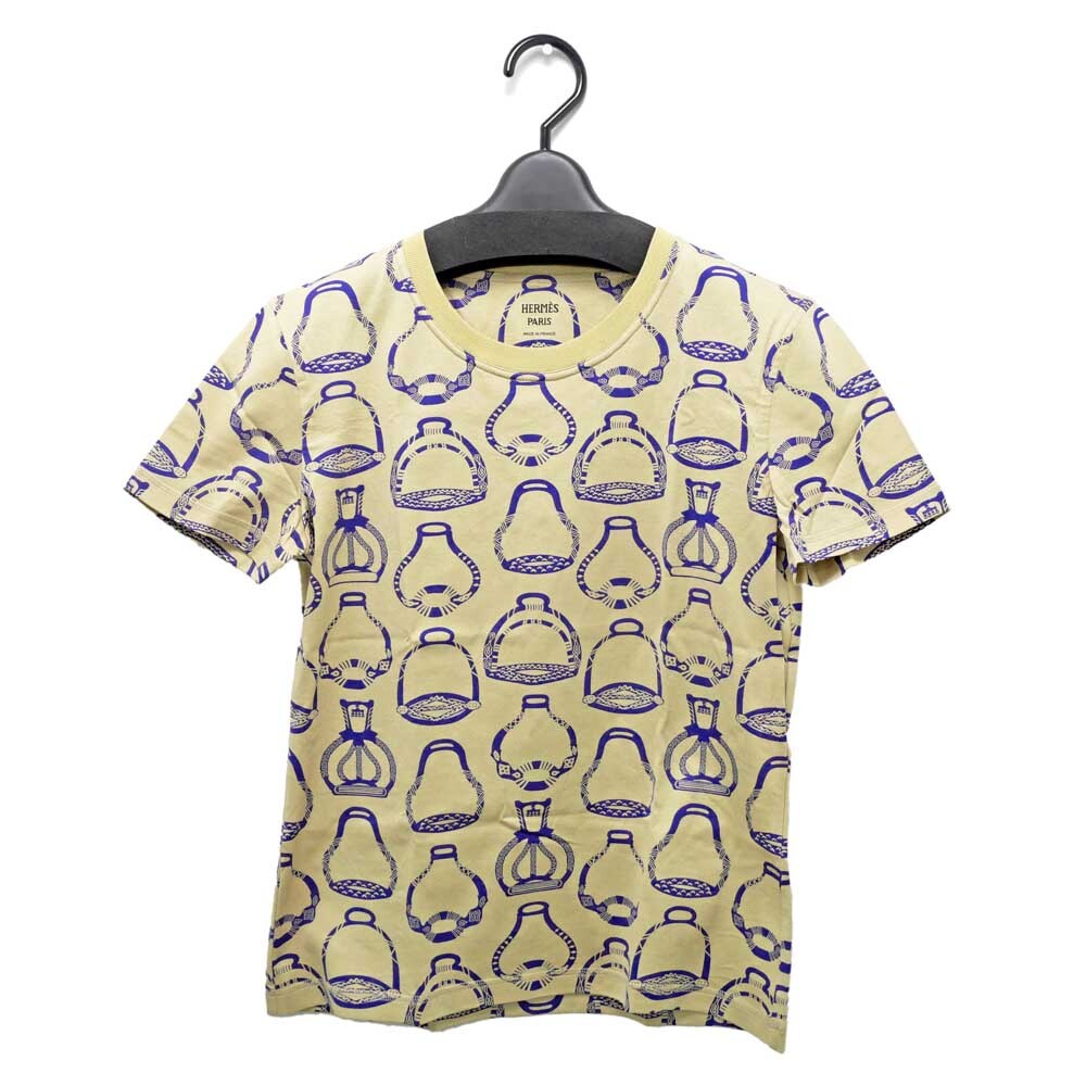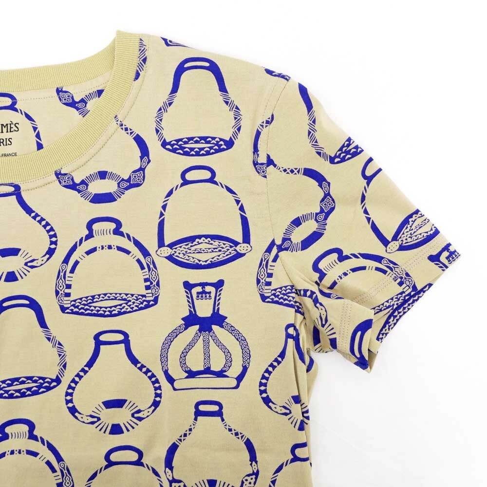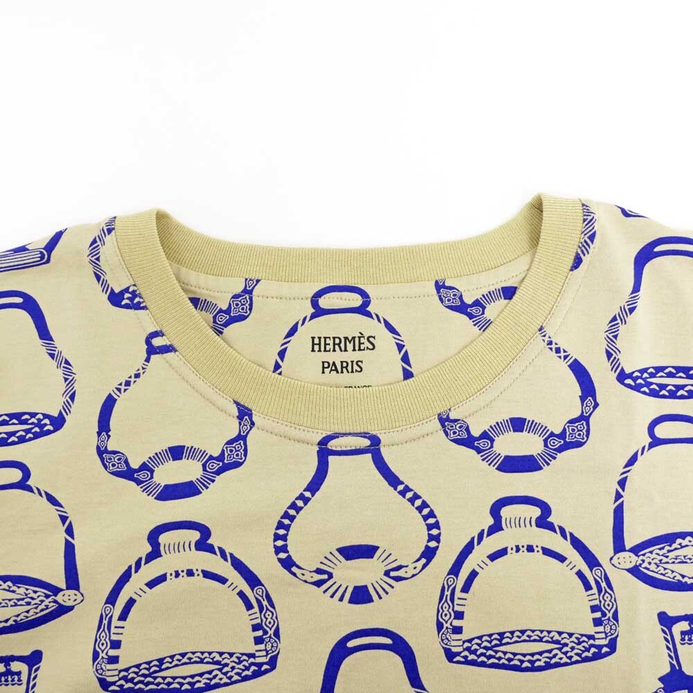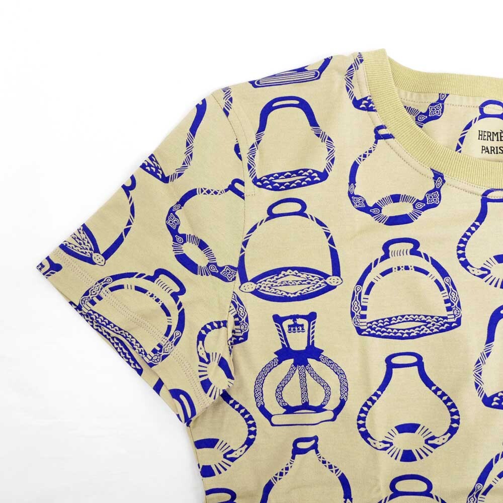 【名東】エルメス Tシャツ Fantaisie d'Etriers ベージュ 38サイズ レディース 女 服