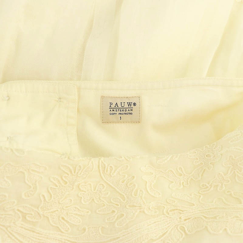 ポウ PAUW コットン刺繍スカート プリーツ ミモレ ロング 1 白 ホワイト /AT ■OS ■SH レディース