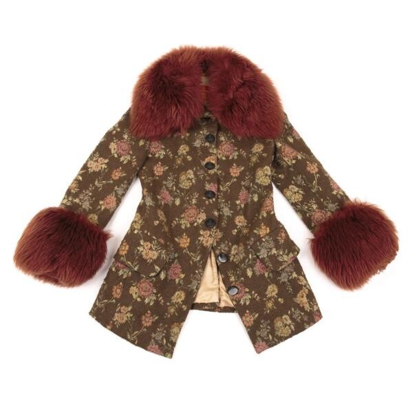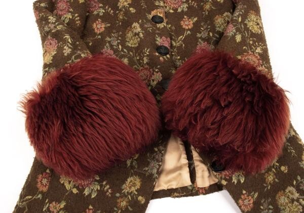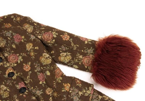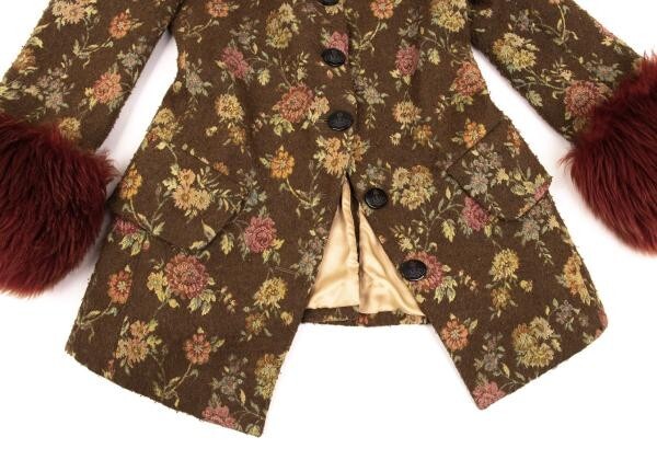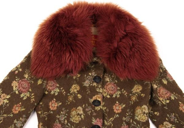 ヴィヴィアンウエストウッド レッドレーベルVivienne Westwood Red Label フェイクファーフローラルジャガードトリムコート 茶他42 |