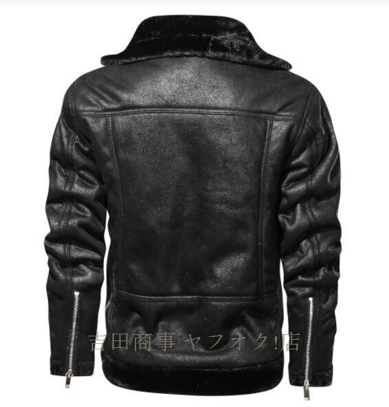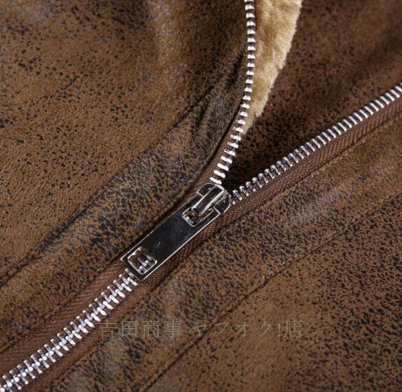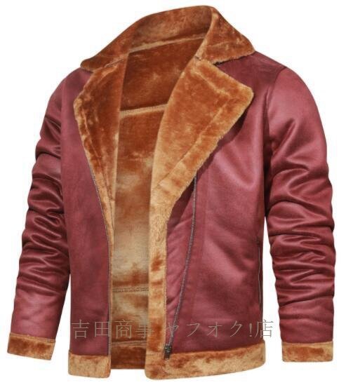 ☆新品秋冬 レザージャケット メンズ 裏起毛 厚手 防寒 ムートンコート ブルゾン ジャンパー 毛皮ファー 裏ボアバイクウェアクラレット