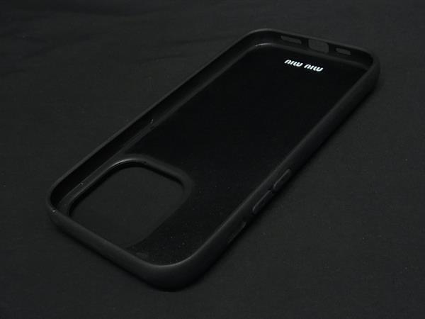 ■美品■ miumiu ミュウミュウ マテラッセ レザー iPhone14Pro 対応 アイフォンケース スマホケース ブラック系×ブルー系 FM4255