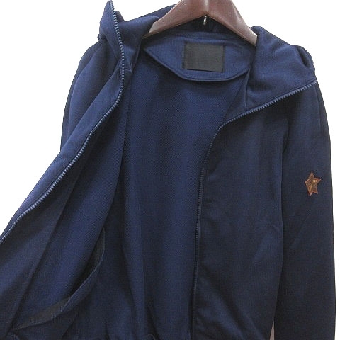 エイチ H ジャケット パーカー ダブルジップ ワッペン 長袖 S 紺 ネイビー 茶 ブラウン /MS レディース