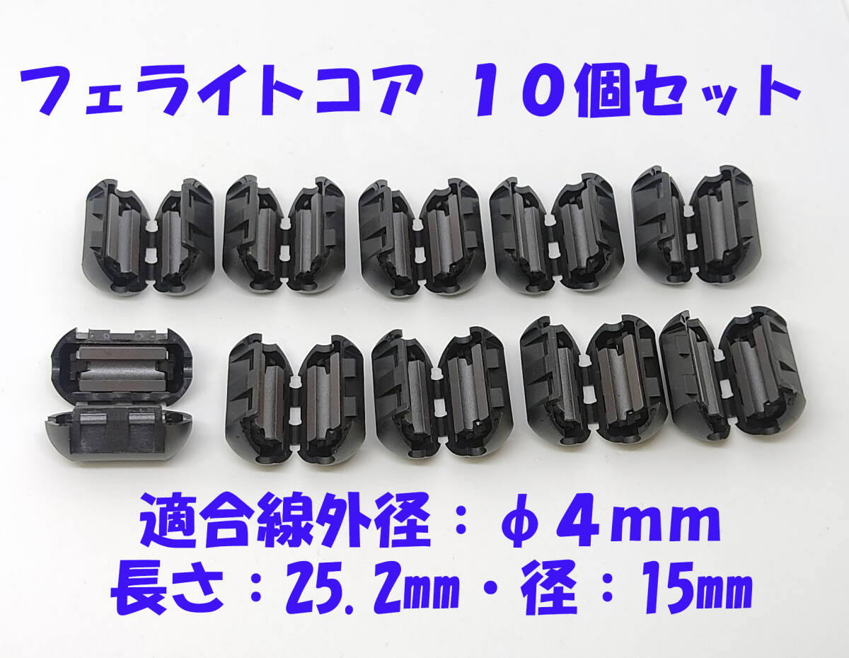 10個セット フェライトコア ノイズフィルター ノイズ 対策 4mmまで カーステ オーディオ カーナビノイズ対策 回り込み対策に 挟めるだけ