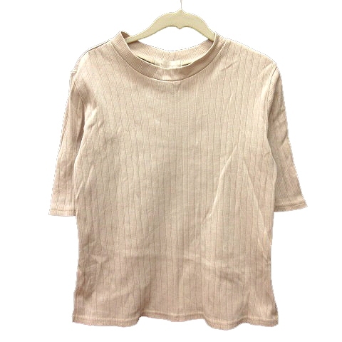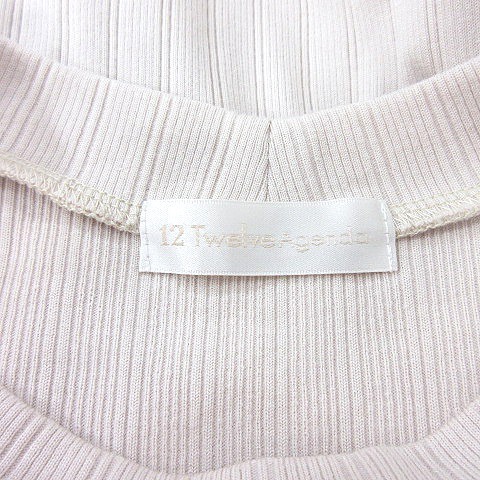 トゥエルブアジェンダ 12Twelve Agenda カットソー クルーネック 五分袖 リブ 2 M ライトベージュ /MN レディース