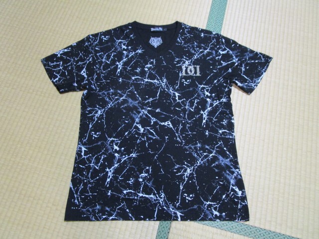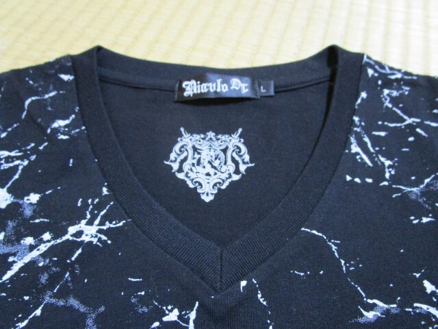 ★Diaula★DD★メンズ★トップス★Tシャツ★L★半袖★Vネック★黒★ブラック★英文字★ラインストーン★ペンキの液しぶきまだら柄模様★
