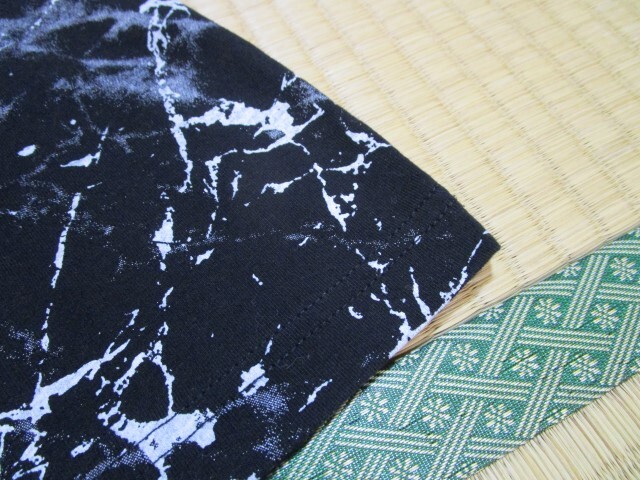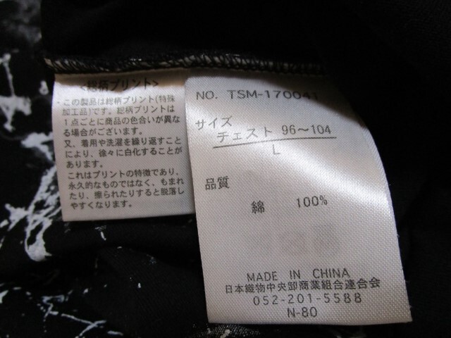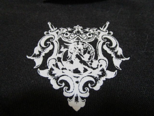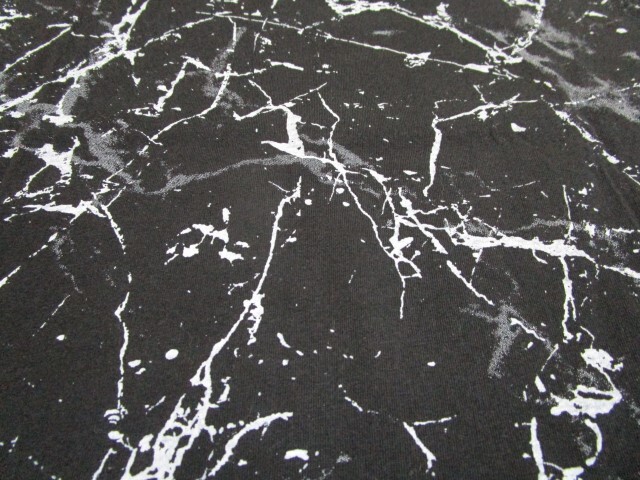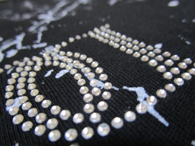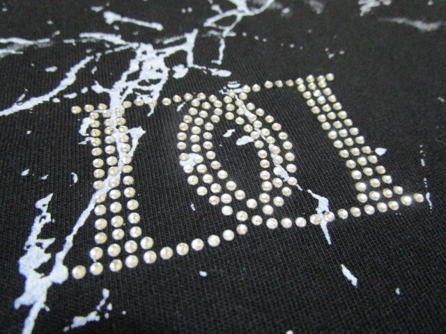 黒地に前後身頃に白色のペンキの液しぶきまだら柄模様、胸元にラインストーン使ったDDの英文字が施されて高級感があります。