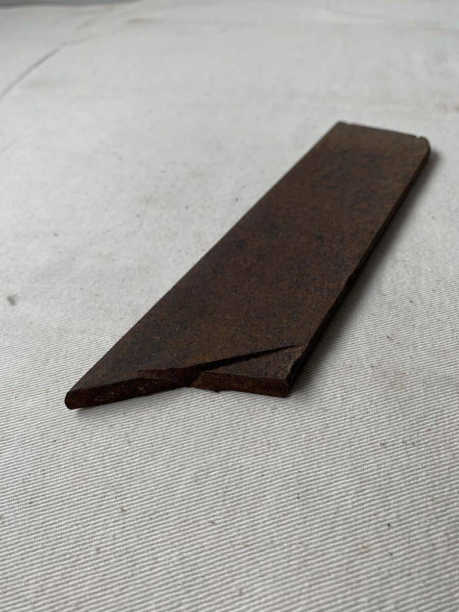 経年の雰囲気が素敵な面白い形の鉄板です。インダストリアルな雰囲気を演出するオブジェや素材などにいかがでしょう。
