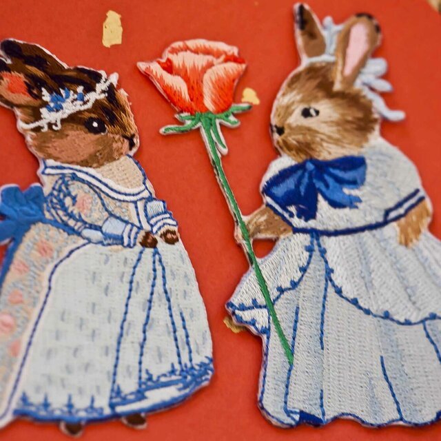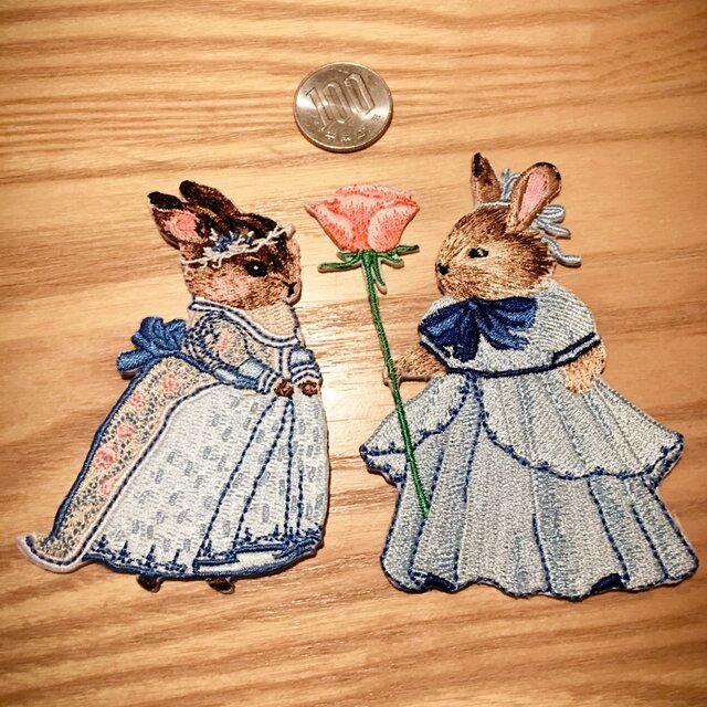 刺繍ワッペンアイロンパッチ★ウサギ兔プリンス&プリンセス ウェディング 2点セット