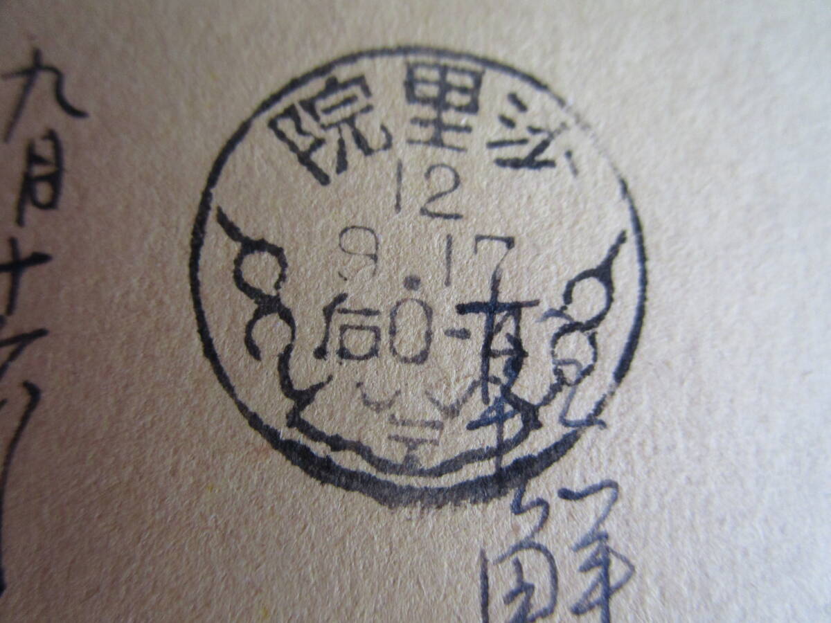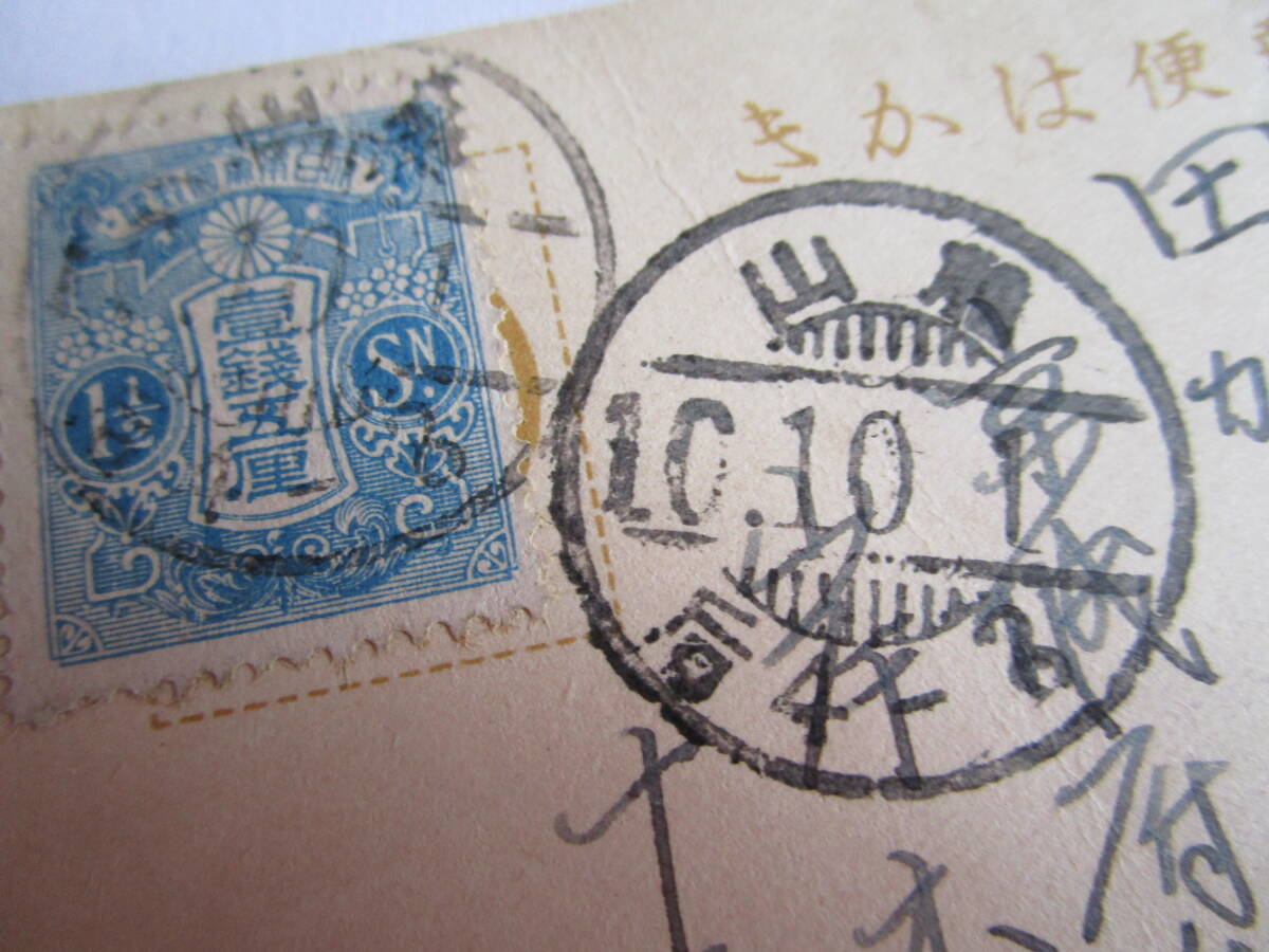 1、霊山モノクロ写真葉書の切手面に旧大正毛紙1・5銭貼櫛型印霊山10・10・1消(画像3参照)→東京市・杉並区宛。