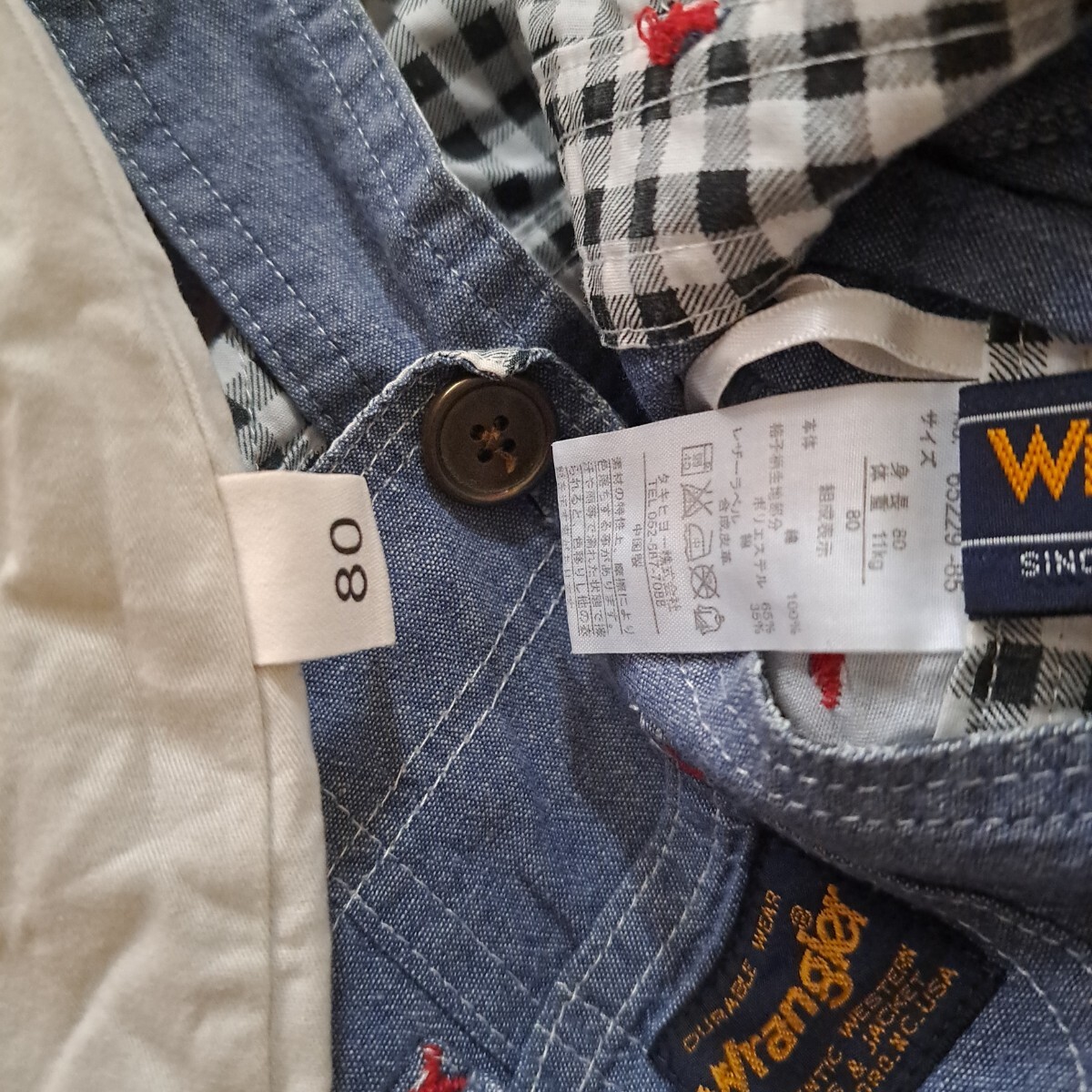 ベージュ→タグはなく横に80とついてるのみです。うっすらシミがあります。ヒモが長かったので軽く縫い付けてます。
