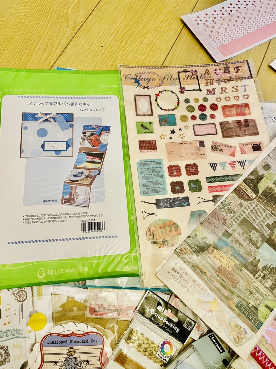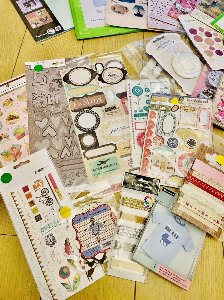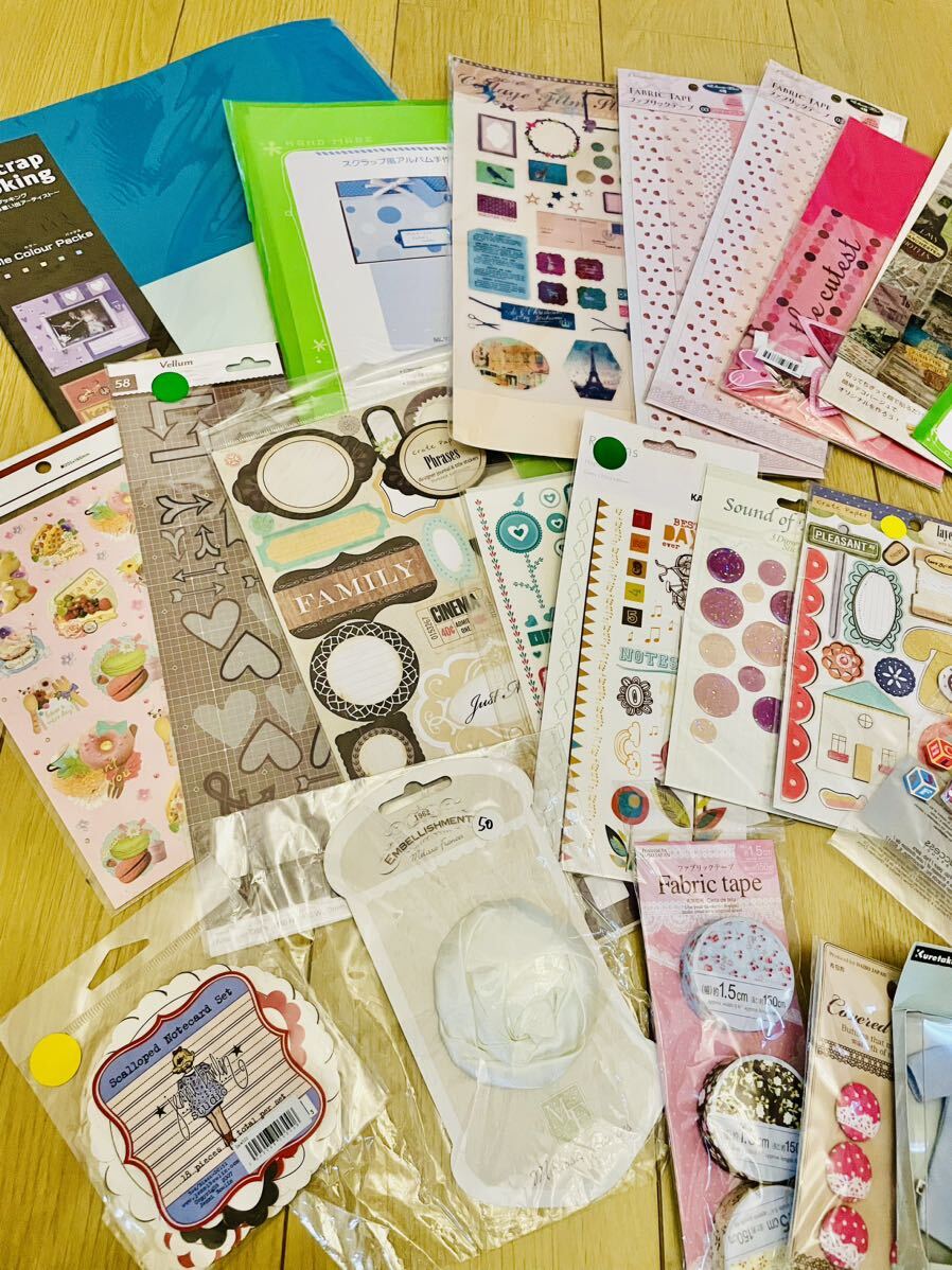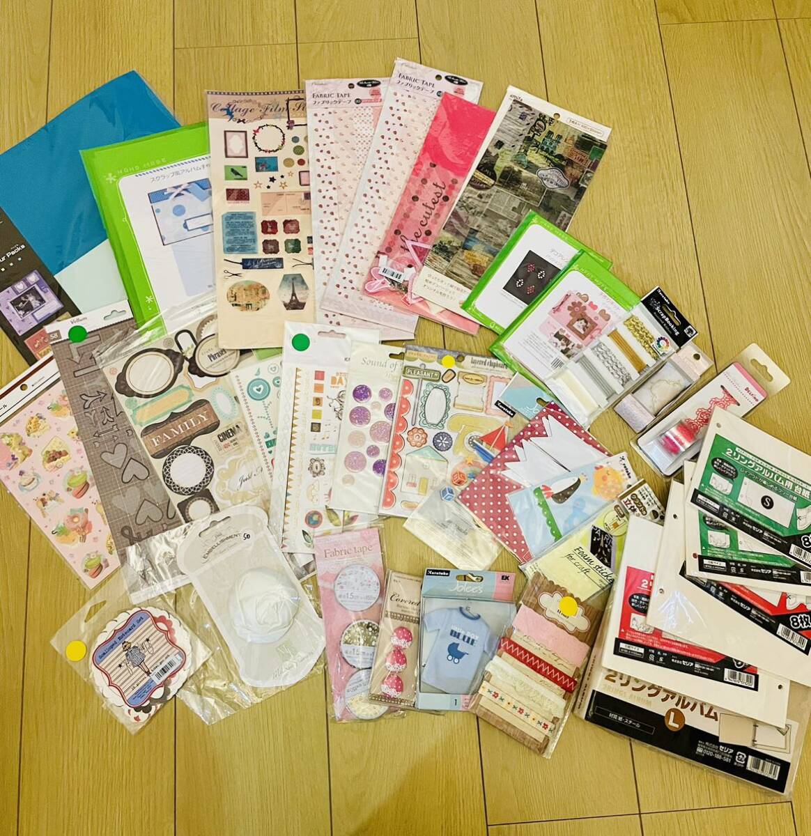 新品 未使用 スクラップブッキングキット大量セット、写真、アルバム作り、思い出、ベビーお祝いcute系おすそ分けセット 花 立体シール