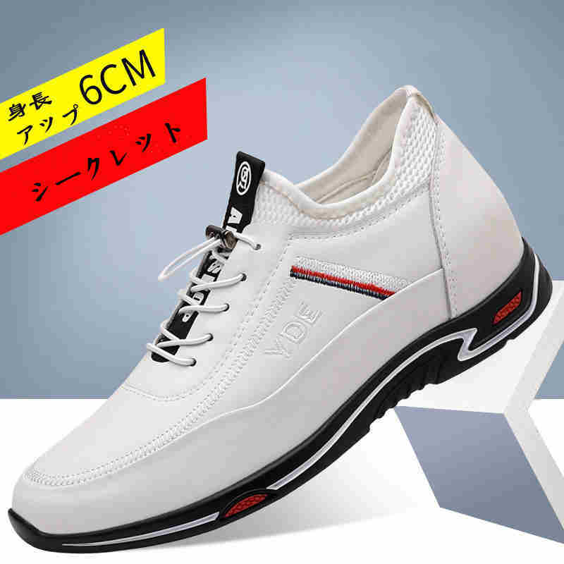 スリッポン スニーカー シークレットシューズ 身長アップ 新品★メンズ カジュアル ドライビングシューズ【898】白 25.0cm