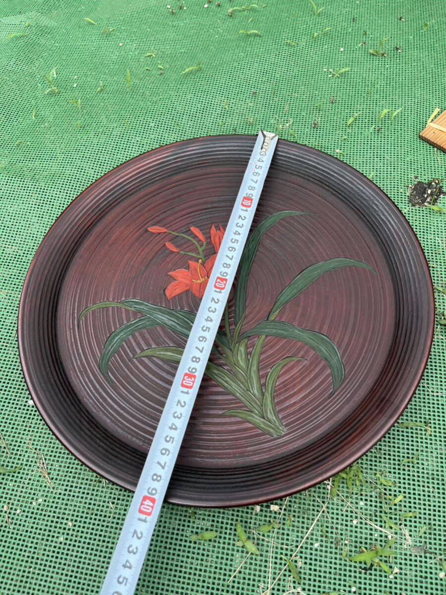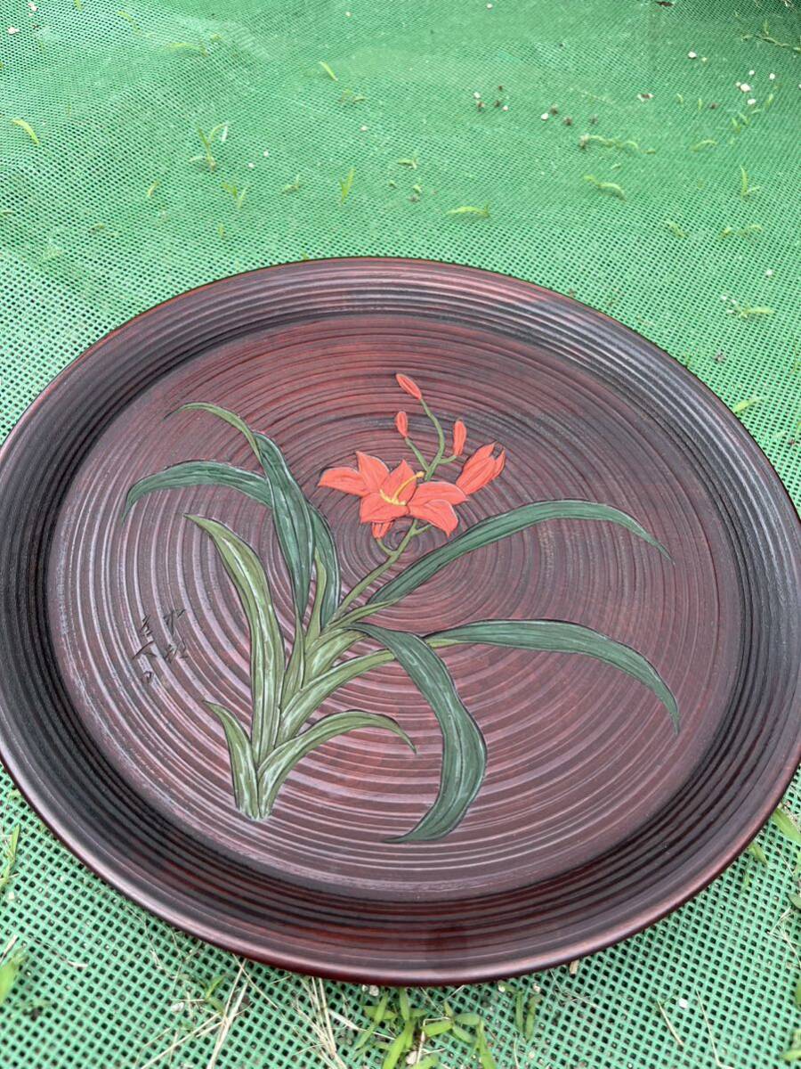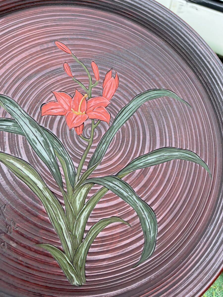 丸盆 煎茶盆 煎茶道具 讃岐彫り 名工 中村道人 (三松斎) お盆 木工芸 6