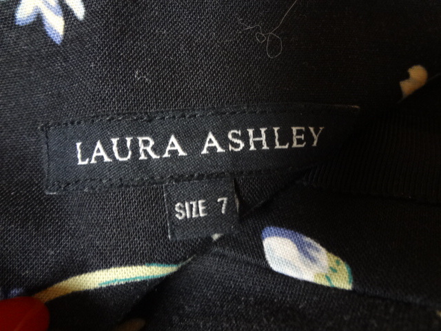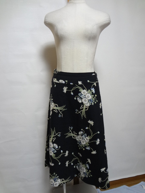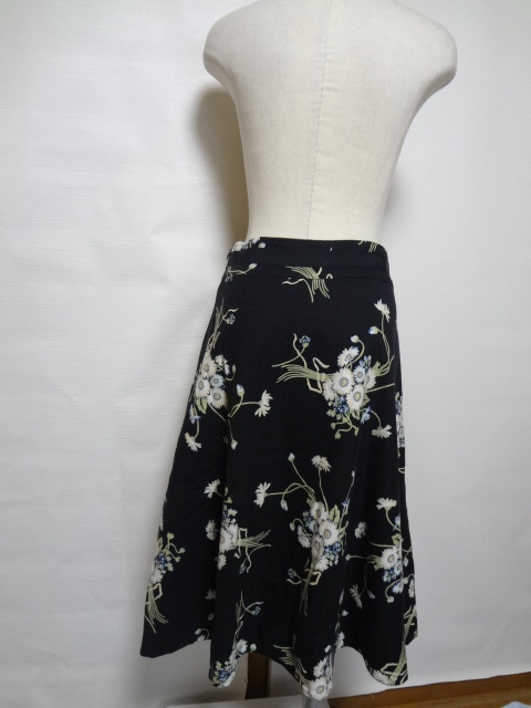 ローラアシュレイ*7*綿100%*綿スカート*フレアースカート*ひざ丈*黒地に柄*厚手の綿スカート*36*S*夏*春*秋