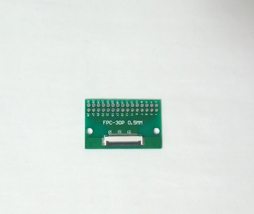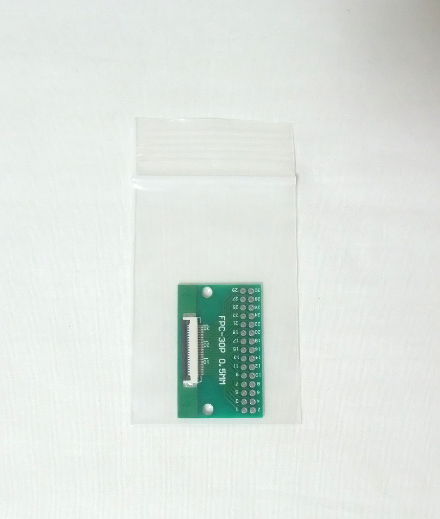 フレキシブルフラットケーブル用アダプタ基板0.5mmピッチ30ピン(フリップロック式、2.54mmピッチに変換、FFC、FPC、新品)です。