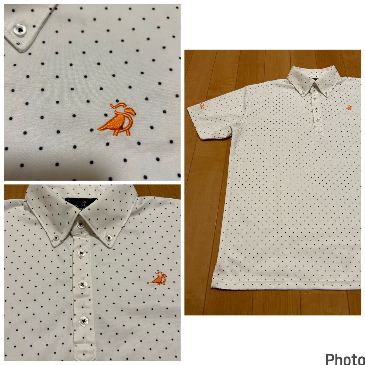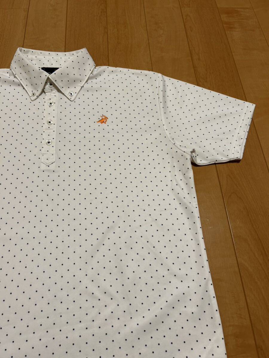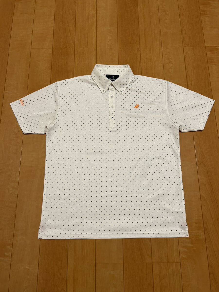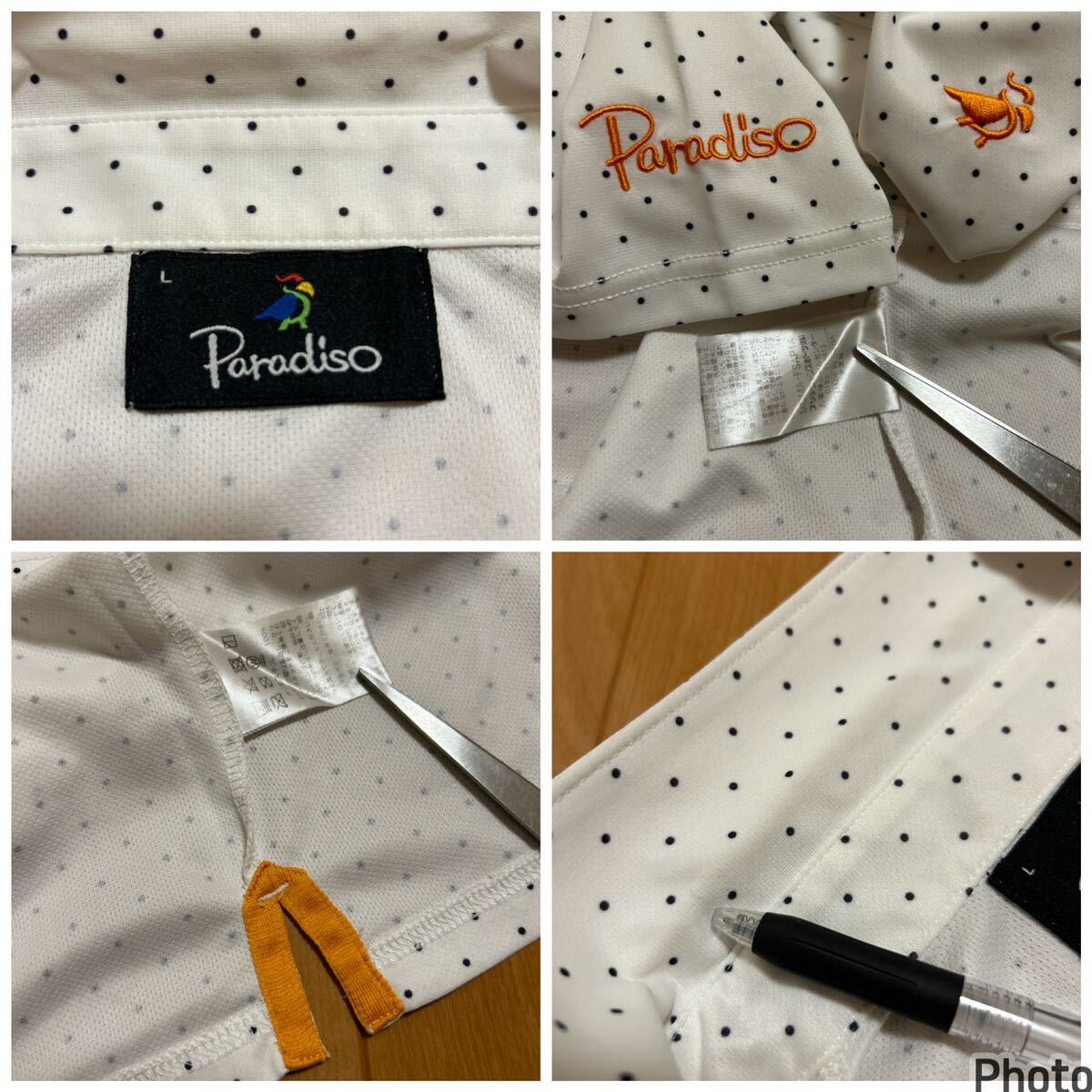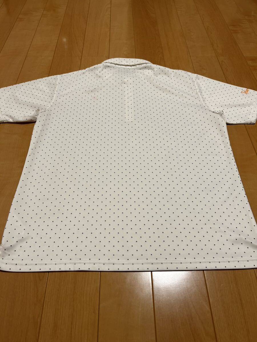 美品☆Paradiso/パラディーゾ サイズL 快適速乾ドライ.半袖BDポロシャツ 2面ロゴ刺繍入・水玉.ドット総柄デザイン!白系 ブリヂストン社