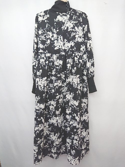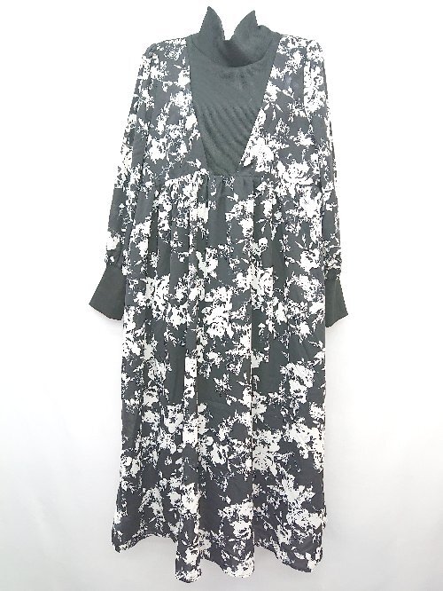 ◇ ◎ JAYRO ジャイロ 花柄 ハイネック 長袖 膝下丈 ワンピース サイズM ブラック ホワイト レディース P