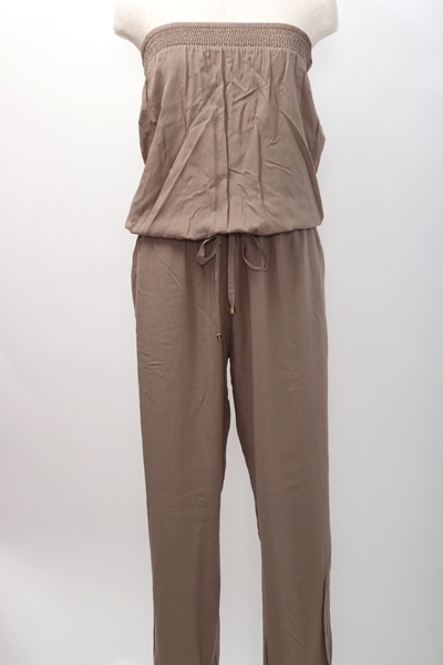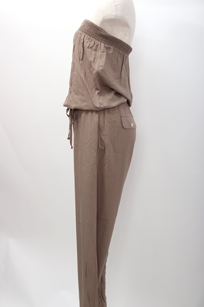 透け感なし 裏地なし ストレッチなし 開閉デザインなし 付属品(取り外し可)なし 商品情報一枚でさまになるオールインワン。さらっとしたレーヨン素材で肌触りも抜群です。バスト部分ゴムで伸縮、ウエスト紐で絞れます。 |