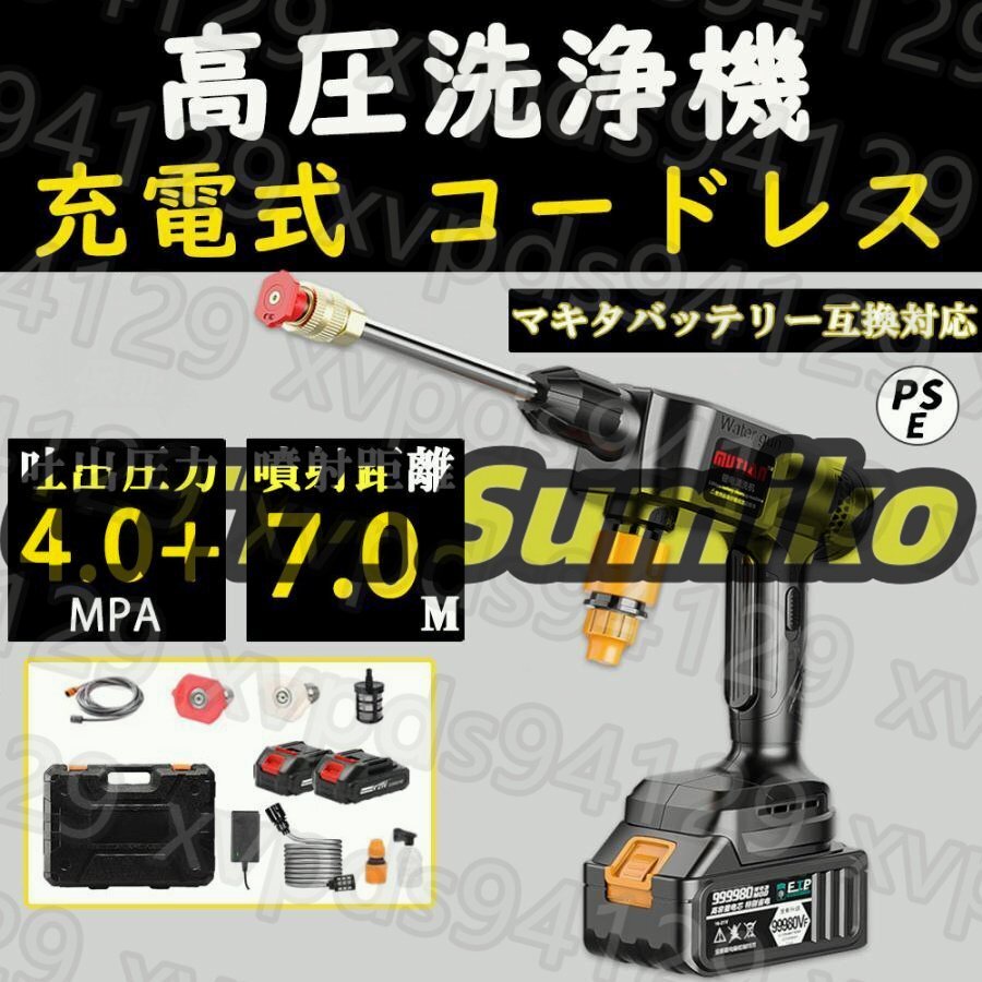 高圧洗浄機 コードレス 充電式 バッテリー2個付 マキタ 18Vバッテリー互換対応 軽量 吐出圧力4.0MPa 強力噴射 家庭用 PSE認証済み