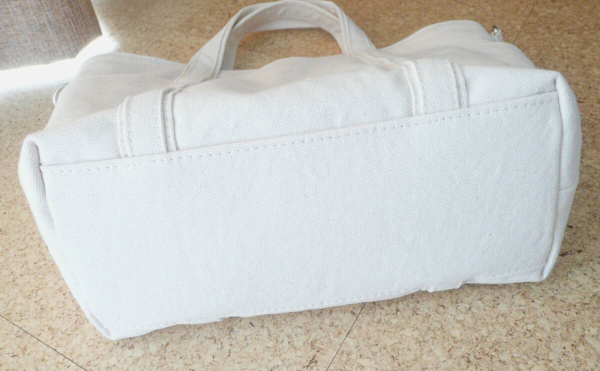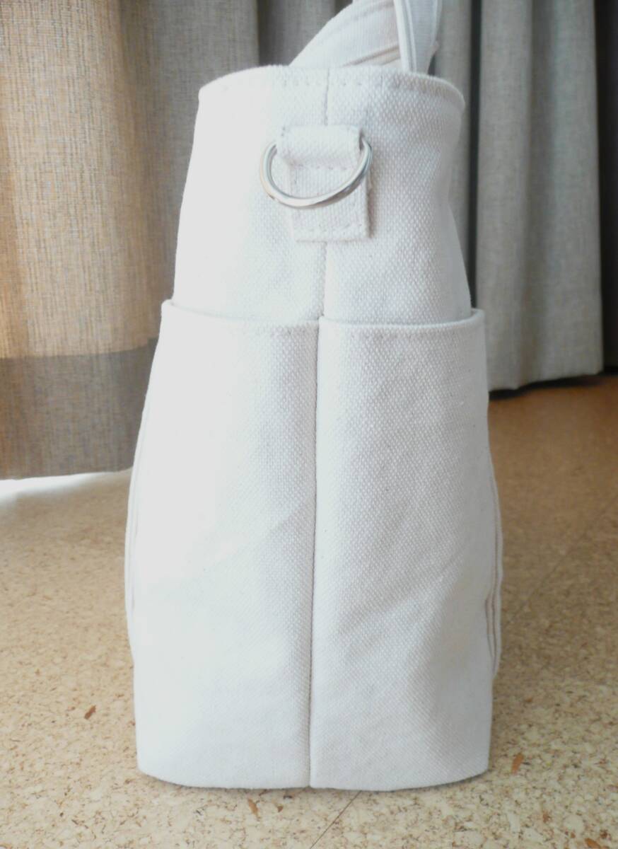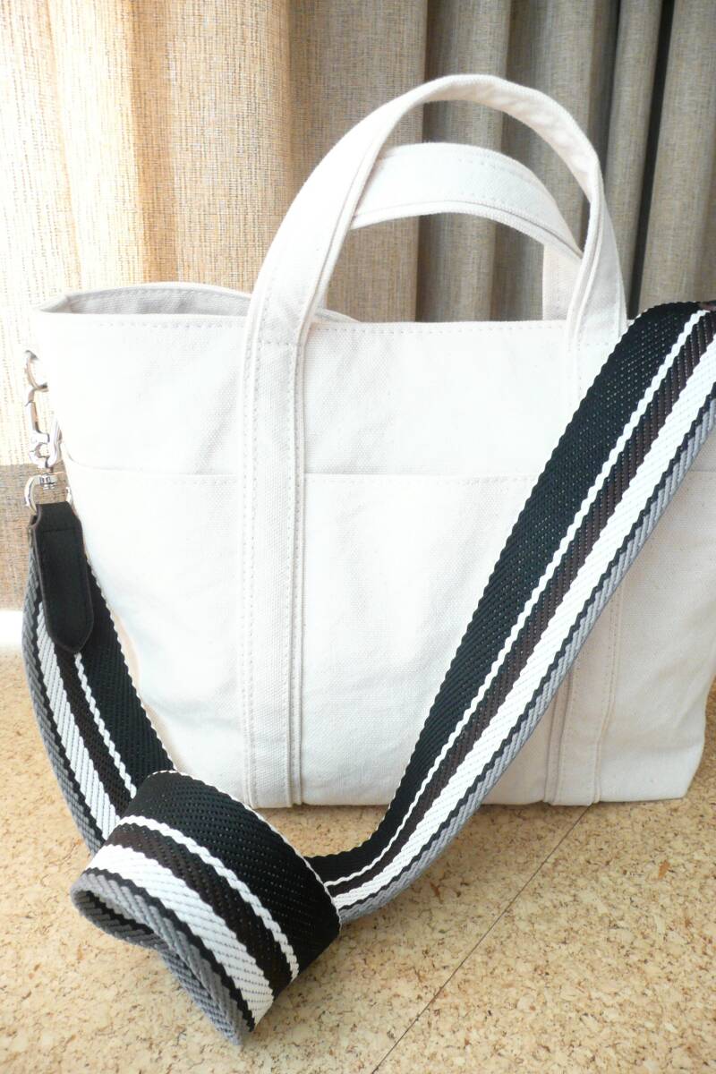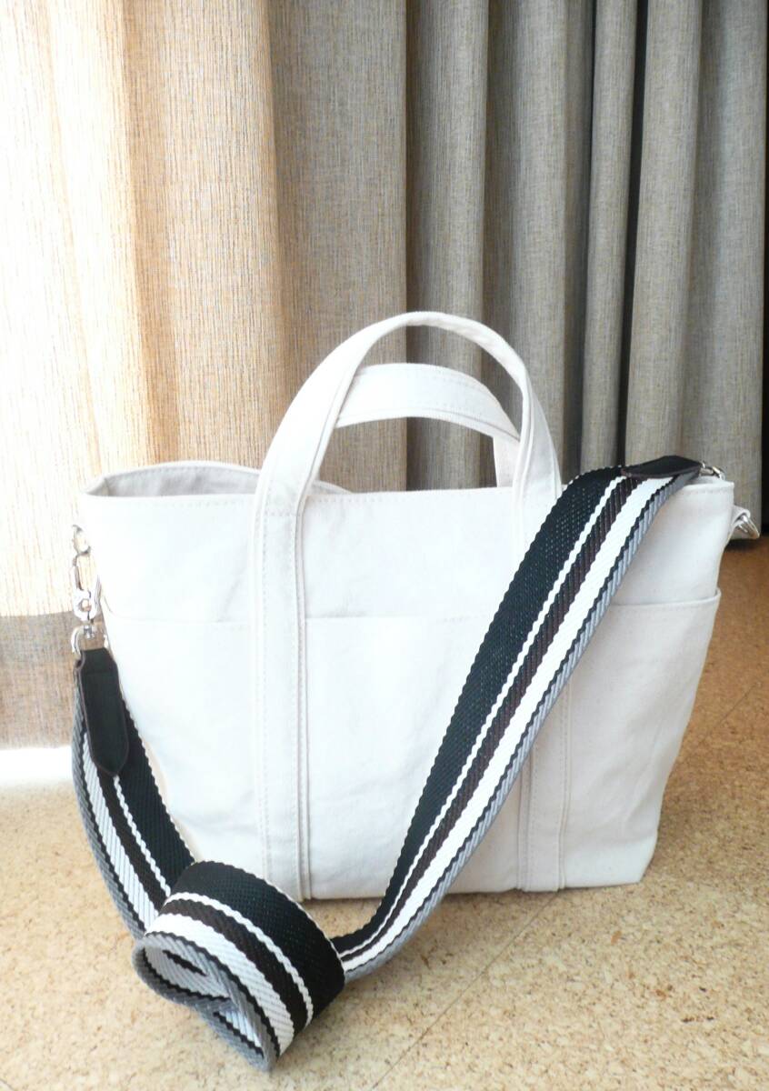 ★バイオウォッシュ加工 8号帆布 生成り トートバッグ 幅広ショルダーストラップ付!新品同様・美品♪