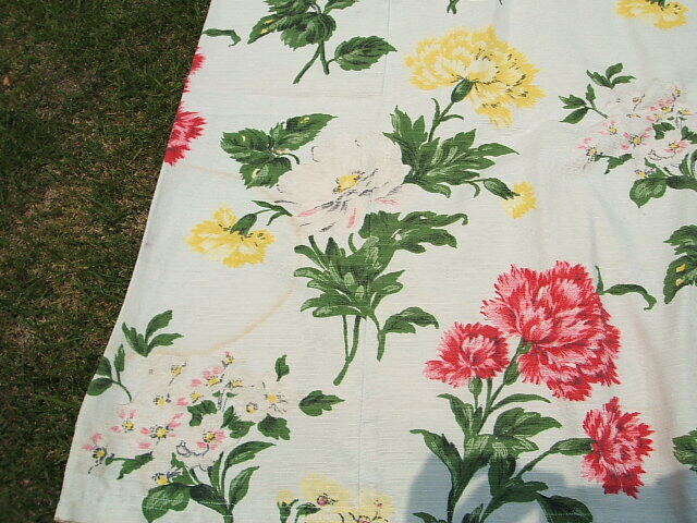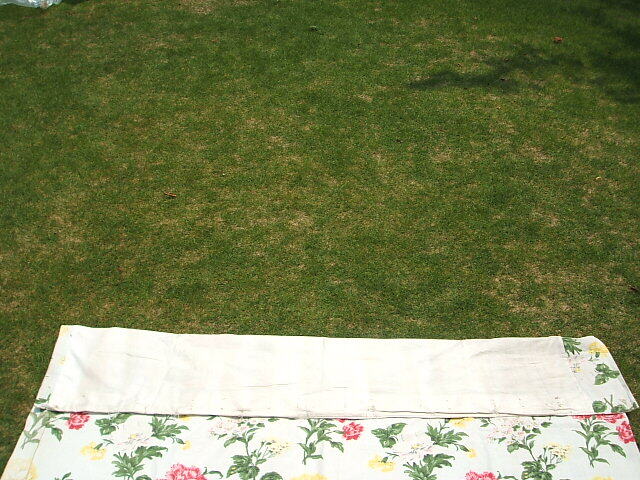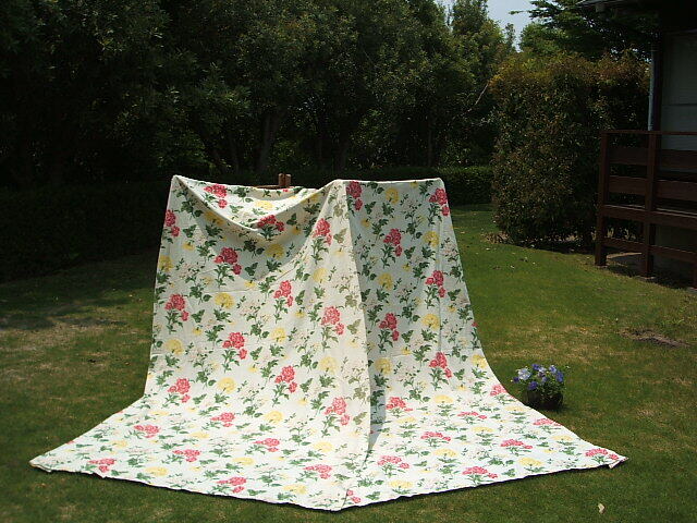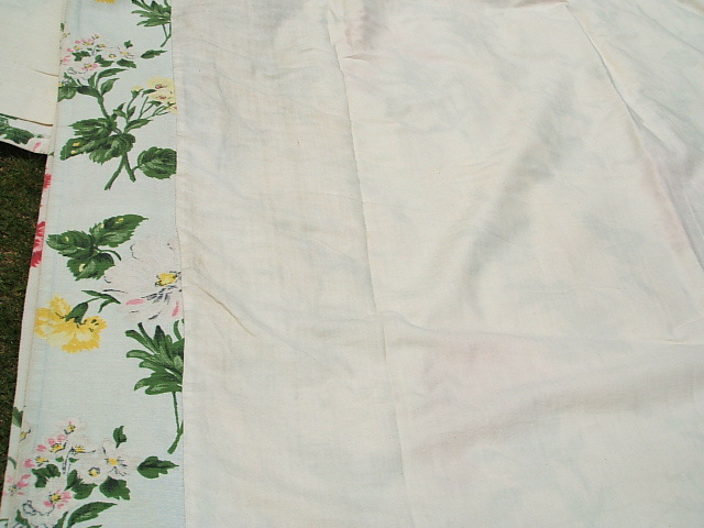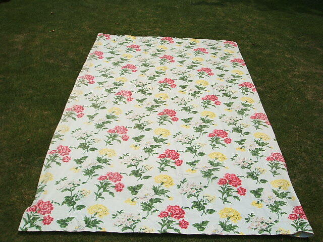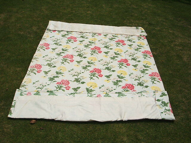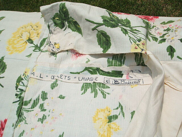 フランスのBritannyで見つけたおしゃれなペアのカーテンです。白(クリーム)地にピンク、黄色、白のお花がとても華やかです。裏地も付いておりしっかり光を遮断します。素材はコットンということでしたが、レーヨンのような手触りです。5枚目のお写真で見られるシミが1ケ所下の方の端にあります。全体的に良い状態です。ドレープカーテンとしてお使いになるとシャトーのような雰囲気になりステキかと思います。