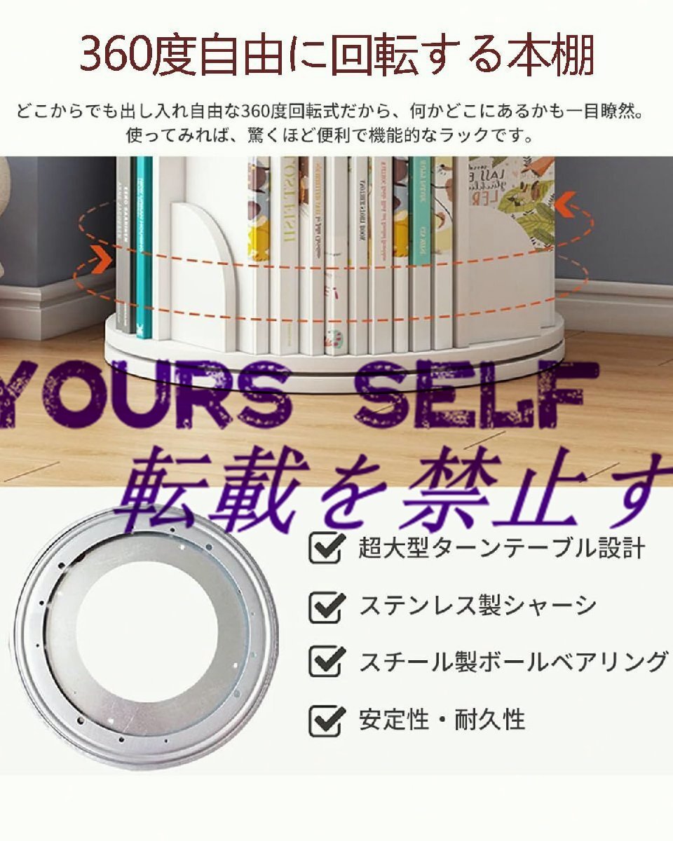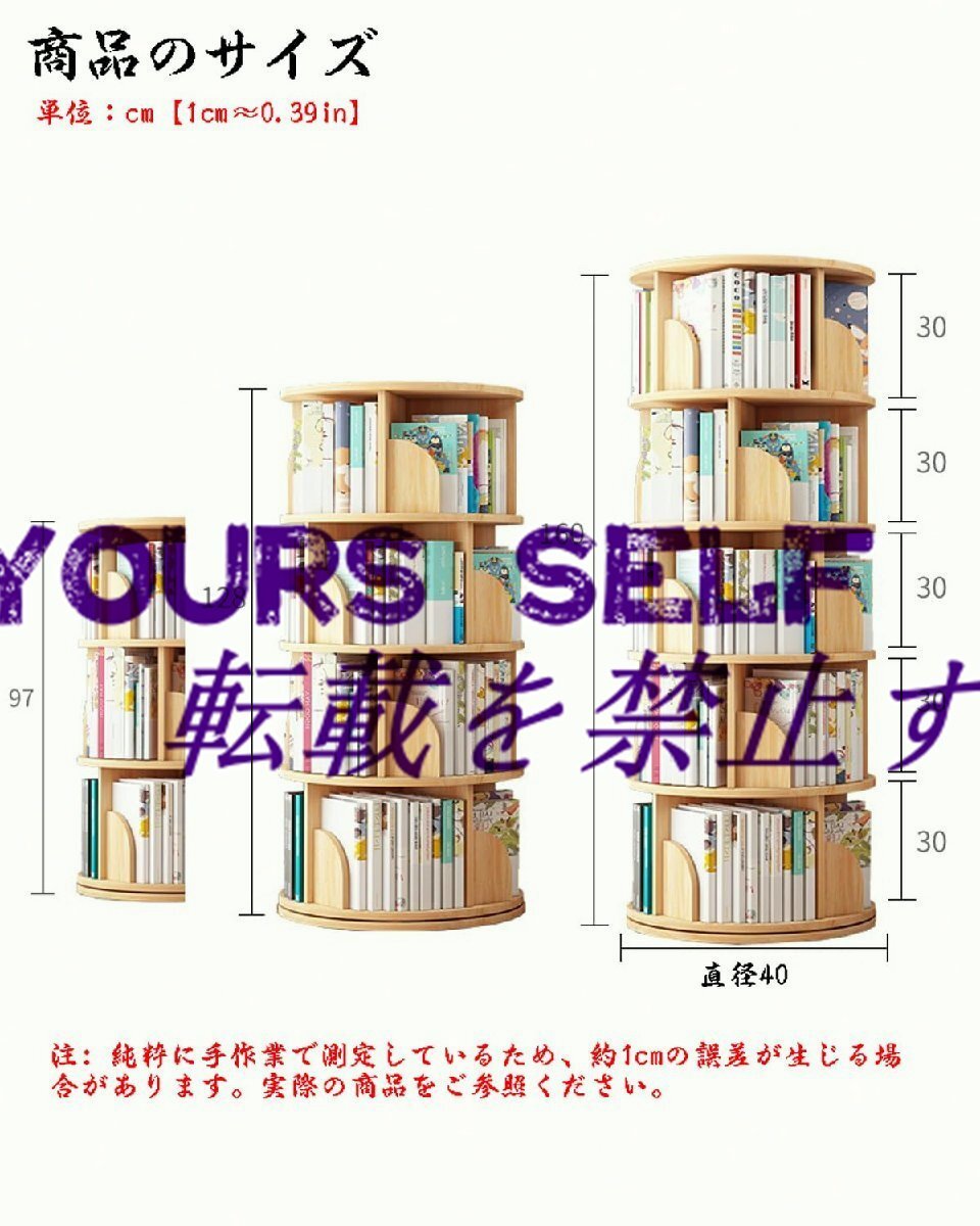 本棚 回転 回転式本棚 天然木 大容量 スリム A4が入る高さ コミックラック 絵本棚 収納棚 CDラック DVDラック 4階建て高さ128cm